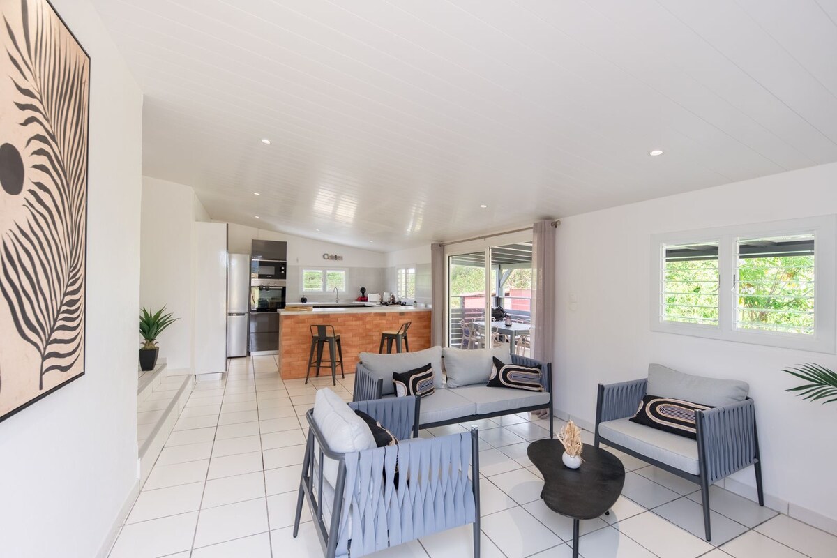 U srcu privatnog posjeda od 4h zasađenih voćkama i vrtlarstvom na pijaci, Bungalow les Atoumaux, površine 60 m², nudi izvanredan i opuštajući pogled na planinu Pelee i Karipsko more. U blizini kuće, na raspolaganju smo vam za savjetovanje i razmjenu trenutaka druženja.