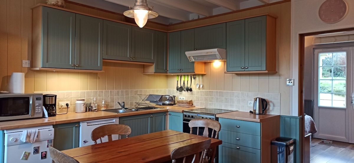 Udobna i potpuno renovirana mala kuća za 2-4 osobe (bračni krevet + kauč na razvlačenje + mali krevetić). Nalazi se u Le Mesnilu, malom mirnom i ugodnom selu koje se nalazi oko 5 km od Portbaila i prvih plaža. Mnoge turističke aktivnosti u blizini: nekoliko pješčanih plaža, šetnje, ribolov ... Namještena i opremljena kuhinja, soba, kupatilo s tušem i WC-om, TV salon s kaučem na razvlačenje i foteljom i jedna spavaća soba s WC školjkom.