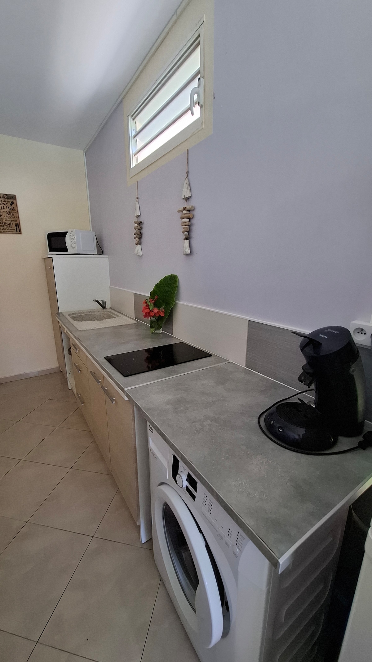 Zdravo, Samo 2 minute hoda od plaže, želimo vam dobrodošlicu u našem klimatizovanom studiju u prizemlju iz naše vile. Smješten u mirnom stambenom području, u blizini mora i sportskih sadržaja (tenis, odbojka na pijesku, tenis na plaži, petanque, mjesto za surfanje, mjesto za kajtanje, daske). Prikladno za parove s bebom ili bez nje (pozajmica za bebe). Kuhinja je potpuno opremljena. Mali kutak je rezervisan za vas u vrtu u hladu palmi s pogledom na more. Besplatan Wi-Fi