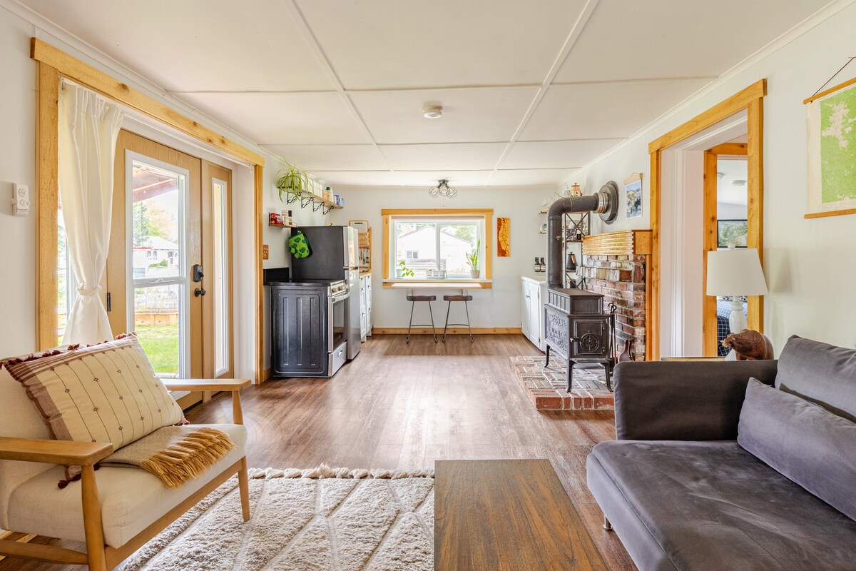 Jeste li spremni da privučete prijatelje? Sa zidom koji se može povući za život u zatvorenom/vanjskom prostoru, pravim kaminom na drva, neočekivanim pogledom na rijeku, ovaj moderni smještaj na litici iznad rijeke Wenatchee i u srcu Leavenwortha (samo 2 minute vožnje do grada!) ova brvnara će vam pomoći da se opustite i opustite! Toplinske lampe na terasi tokom zime ili a/c unutra tokom ljeta, sigurno ćete uživati u boravku u The Overlook **SNJEŽNA preporuka ** Pobrinite se da je vaš automobil AWD ili 4WD.