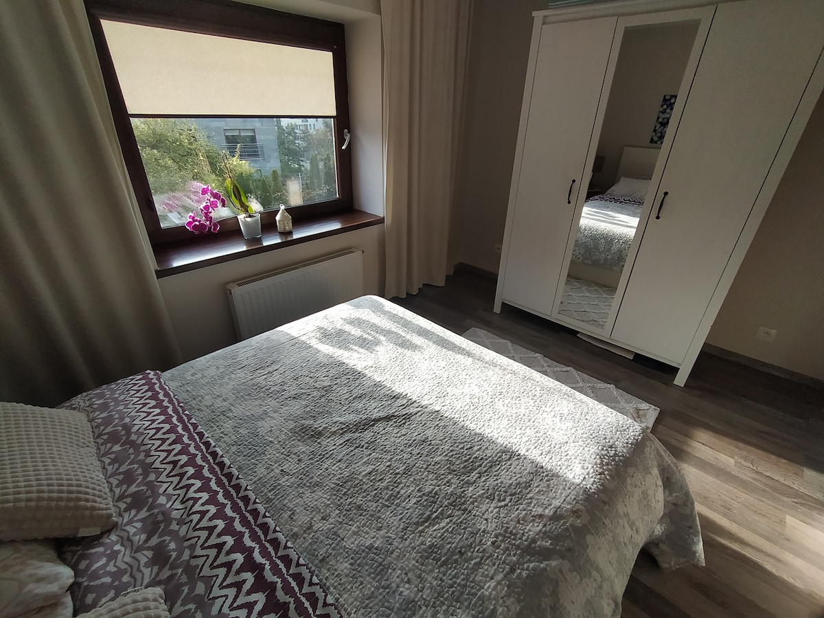 Dvokrevetna spavaća soba i jednostavan pristup Starom gradu i svim lokalnim atrakcijama javnim prevozom. Postoji dovoljno besplatnog parking mjesta. Jedinica za iznajmljivanje je potpuno nova, ima privatno kupatilo s prostranom tuš kabinom i malu čajnu kuhinju s frižiderom. U sobi se nalazi bračni krevet, a na raspolaganju je i dodatni madrac. Stan je odvojen od domaćinovih prostorija i ima zaseban ulaz u zgradu. Jezici koji se govore: engleski, poljski, španski.