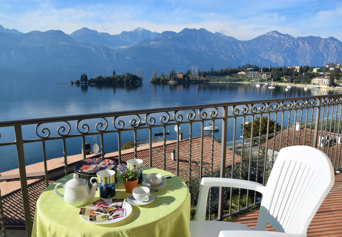 Svijetli i originalni stan nekoliko metara od jezera, s velikom terasom na kojoj možete večerati, uključujući prostor za opuštanje okružen našim lijepim sukulentima. U mirnom i stambenom mjestu. 900 metara od historijskog centra Desenzana i 100 metara od šetnje jezerom. Djelimični pogled na jezero, planine i zeleni vrtovi. Spa tuš sa turskim kupatilom i hromoterapijom. Besplatan parking na ulici. 30 minuta automobilom od Gardalanda i zabavnih parkova. Cir: 017067-CNI-00733 CIN: IT017067C2DHAHOG7V