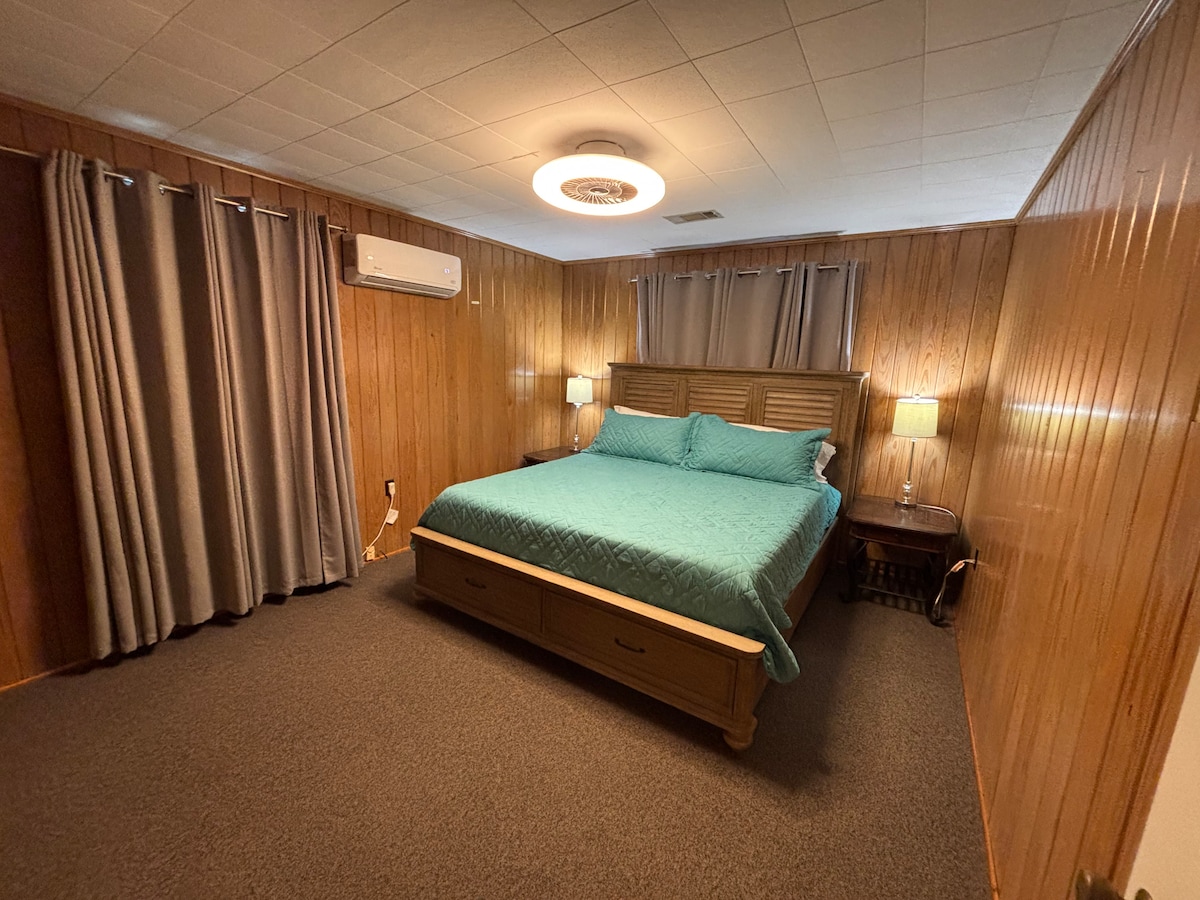 Down to the Wire is a newly renovated condo just "down" Wire Road near the AU Vet School. Upstairs has 2 bedrooms, each with king beds and their own private baths. Downstairs you will find a living room, which has a queen sofa sleeper, 1/2 bath and kitchen. The kitchen features new appliances with everything you will need to stay in and cook if you choose. A washer and dryer is provided as well.