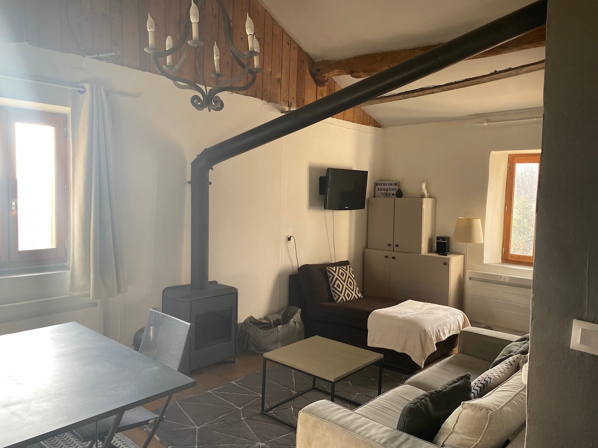 U srcu prirodnog parka Pilat, u blizini Ardèchea, s direktnim pristupom pješačkim stazama. Novi nezavisni smještaj s privatnim spa centrom, integrisanim, bračnim krevetom, stolom za masažu, terasom kojoj se može pristupiti iz spa centra i nudi pogled na Alpe i Mont Blanc po vedrom danu. Velika terasa na spratu. Parking na ulazu. Sve udobnosti koje su vam potrebne za prekrasan odmor u zelenom i privilegovanom okruženju. 30 minuta od A7, 1 sat od Lyona. Posteljina, peškiri, kućni ogrtači su obezbijeđeni.