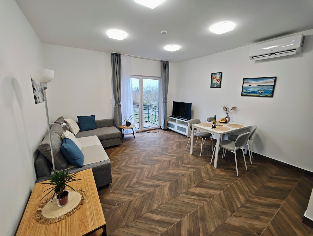 Ovo je zapanjujući, novouređeni i novouređeni stan otvorenog tipa u prizemlju s prozorima od poda do stropa koji gledaju na svoj privatni vrt i terasu. Stan je izgrađen na padini, na brdu i zaista je opuštajući. Nalazi se u slikovitom Fonyódligetu, okružen prirodom i pješačkim stazama. Plaža je udaljena manje od 5 – 10 minuta hoda, a centar grada Fonyód udaljen je oko 15-20 minuta opuštajuće šetnje uz jezero.