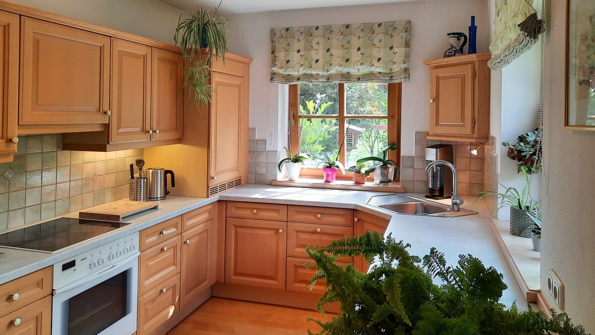 Naša porodična organska farma nalazi se na 985 m nadmorske visine s prekrasnim pogledom na Alpe. Okruženi smo skijalištima: Zell am See-Schmittenhöhe, Kaprun-Kitzsteinhorn, Kitzbühel, Saalbach-Hinterglemm i Leogang. Osim toga, vodopadi Krimml i Grossglockner High Alpine Road su blizu. Stan se nalazi u prizemlju seoske kuće. Ima vlastiti ulaz i udobno zaklonjeno dvorište s odličnim pogledom koji se nalazi neposredno pored velikog vrta.