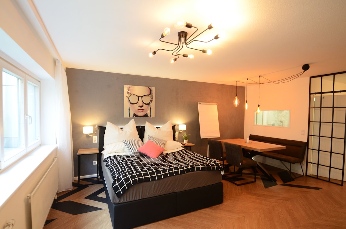 Discover city living at its finest in our newly renovated, highly central 40m² apartment. Nestled on the 2nd floor of a historic building, this exclusive space boasts a spacious living room, comfy bedroom, bathroom with toilet, and a well-equipped kitchen. Additional amenities include a sofa bed, TV, WLAN, washing machine, and a full kitchen setup. All your daily needs, shops, cafés and restaurants just around the corner. Immerse in art, culture, shopping and sights steps away.