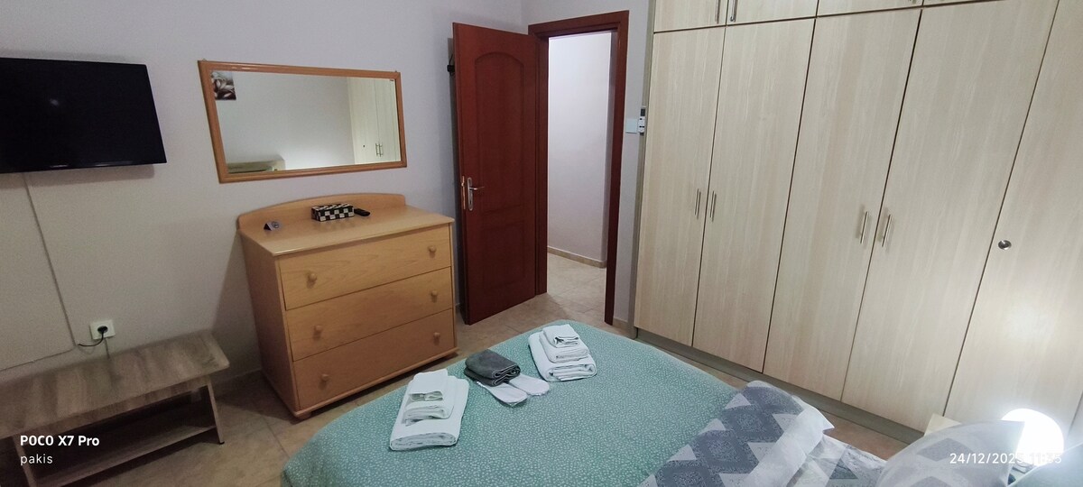 ✨ HydraNest Orestiada – bračni krevet, hidromasaža i balkon 🌿 Nedavno renoviran 2024. godine, ovaj svijetli stan je savršen za samostalne putnike ili parove, samo 600 metara od centra grada. Opustite se u prostranoj spavaćoj sobi, osvježite se u hidromasažnoj tuš kabini, kuhajte u potpuno opremljenoj kuhinji i opustite se na balkonu s mirnim pogledom na zelenilo. Besplatan parking je također dostupan radi lakšeg snalaženja. Idealno za mjesečne boravke: udobnost i sadržaji za boravak u Orestiadi.