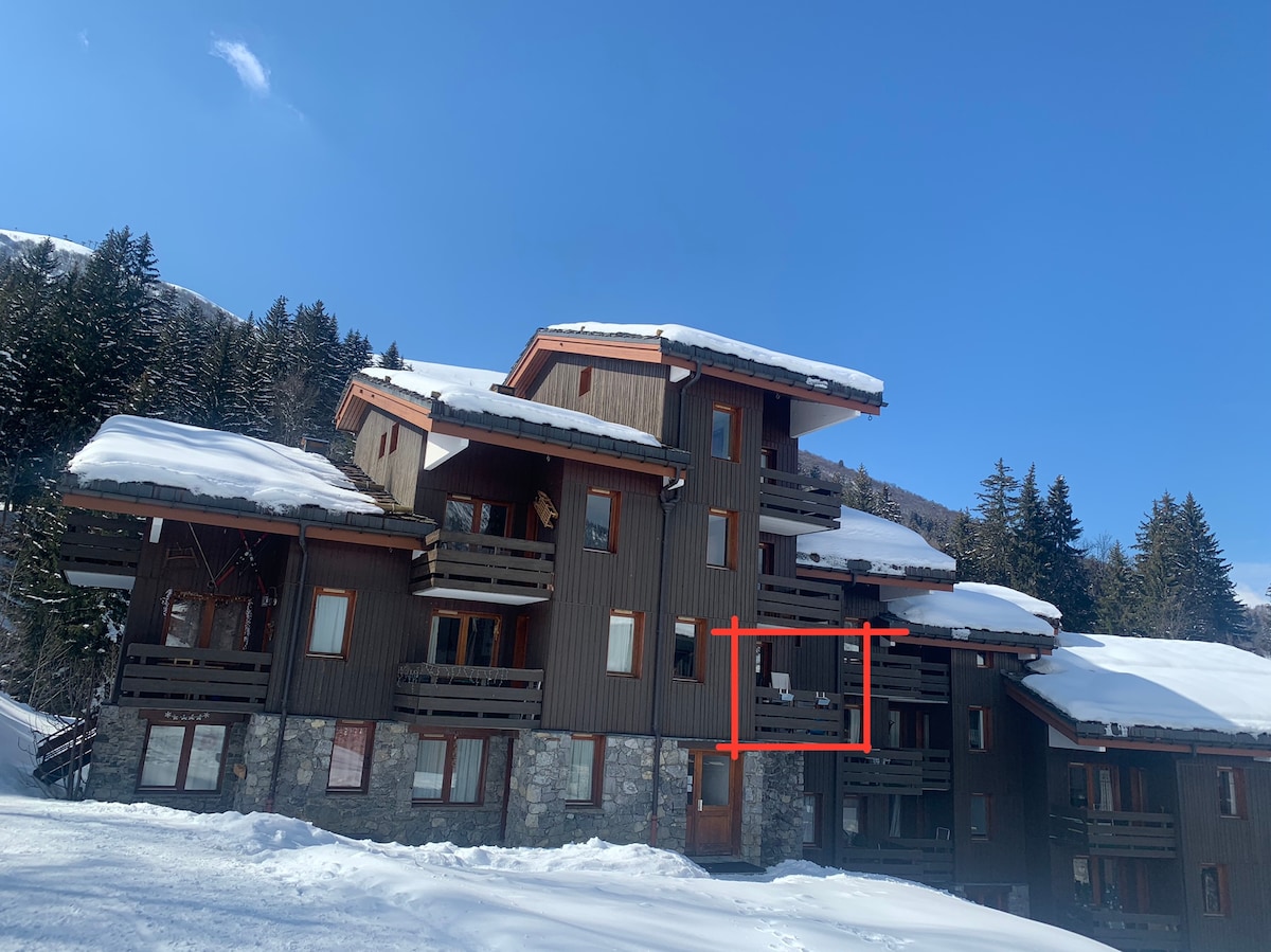 Valmorel, živahno susjedstvo, stan u rezidenciji Lauzičre ispod, 2 sobe od 28 m2 koje se mogu razdijeliti, u podnožju gondole Pierrafort. Jugozapadna strana, kada-tuš, wc, 1 prostor za spavanje s 2 kreveta za jednu osobu ili bračnim krevetom, 1 drugi prostor za spavanje s 2 odvojena kreveta s kliznom pregradom, mala kuhinja s perilicom posuđa, veliki balkon s umjetnom travom na izdignutom prizemlju; novi parket za zimu 2025. idealna lokacija za skijanje. područje za sanjkanje ispred rezidencije. Posteljina nije obezbijeđena, može se iznajmiti