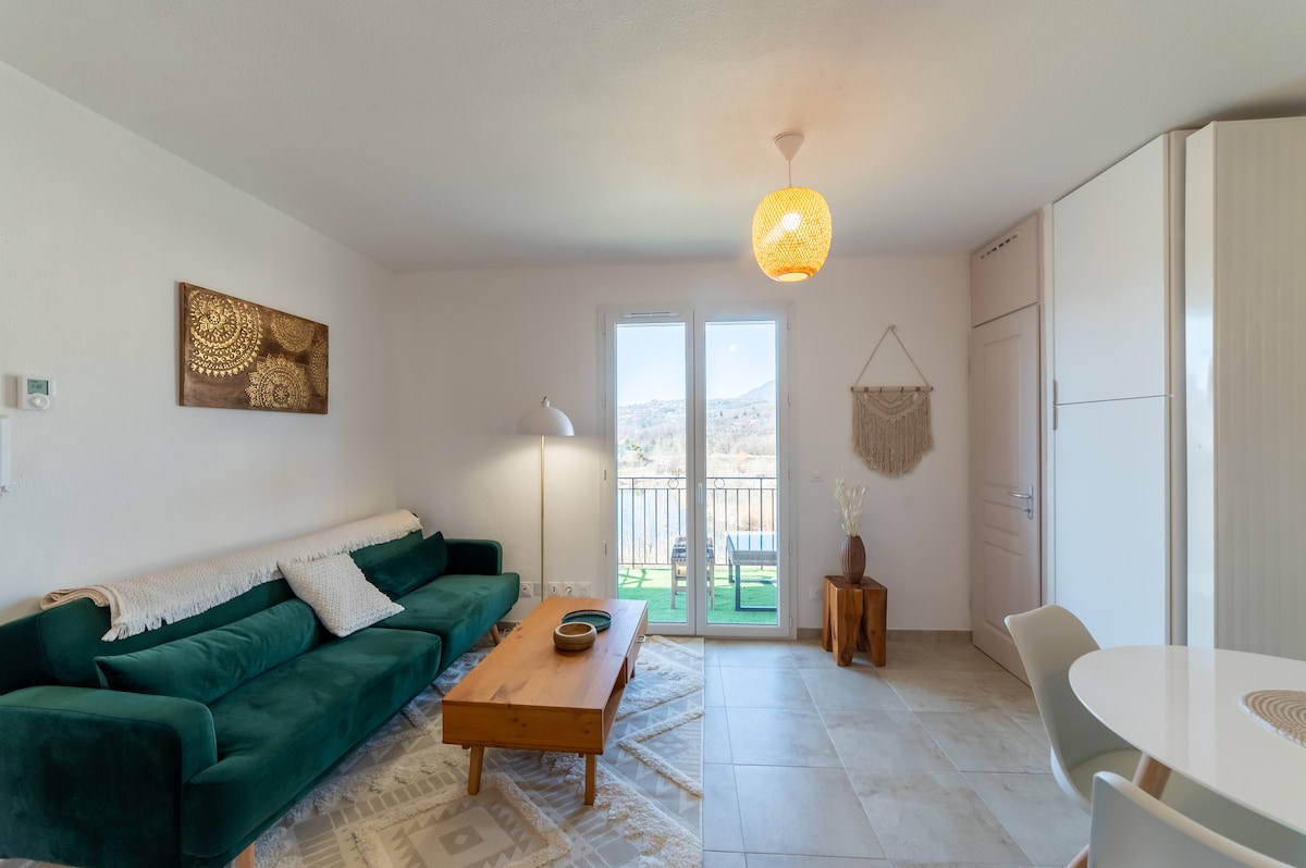 Nudimo vam šarmantan samostalni smještaj, potpuno opremljen kako bismo vam pružili udoban dom od kuće tokom vašeg boravka u francuskim Alpama. Bračni krevet (160x200), kuhinja, klima uređaj, televizija s Netflixom... Privatna terasa Nudimo i besplatan pristup našem grijanom bazenu (od maja do septembra) Između Alpa i Provanse, dođite i uživajte u našem području ! Svako godišnje doba je čarobno ...