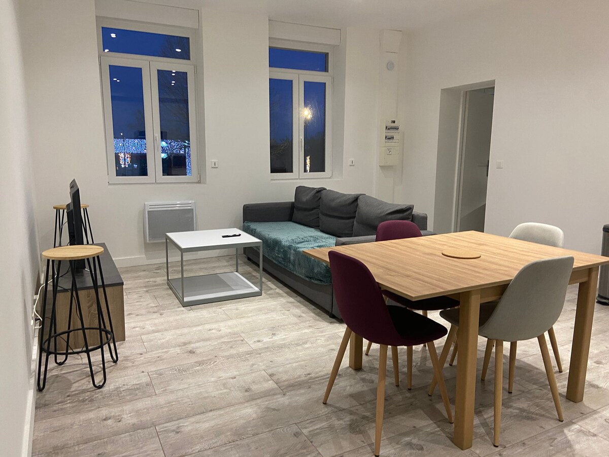Uživajte u cijelom objektu s udobnom dnevnom sobom, opremljenom kuhinjom, spavaćom sobom s bračnim krevetom (nova posteljina) s tuš kabinom. Oprema za bebe na zahtjev Sadržaji: besplatan parking udaljen manje od 100 m Željeznička stanica na 500 metara Piscine Sourcéane na 800 m Boulodrome du Douaisis 700m Pivovare su udaljene 900 m 5 minuta od CHR-a 9 km od fabrike Renaulta Brzo i besplatno autobusom: - Douai centar - Gayant expo - Pravo mjesto u blizini autoputa (Lille, Arras, Lens, Cambrai)