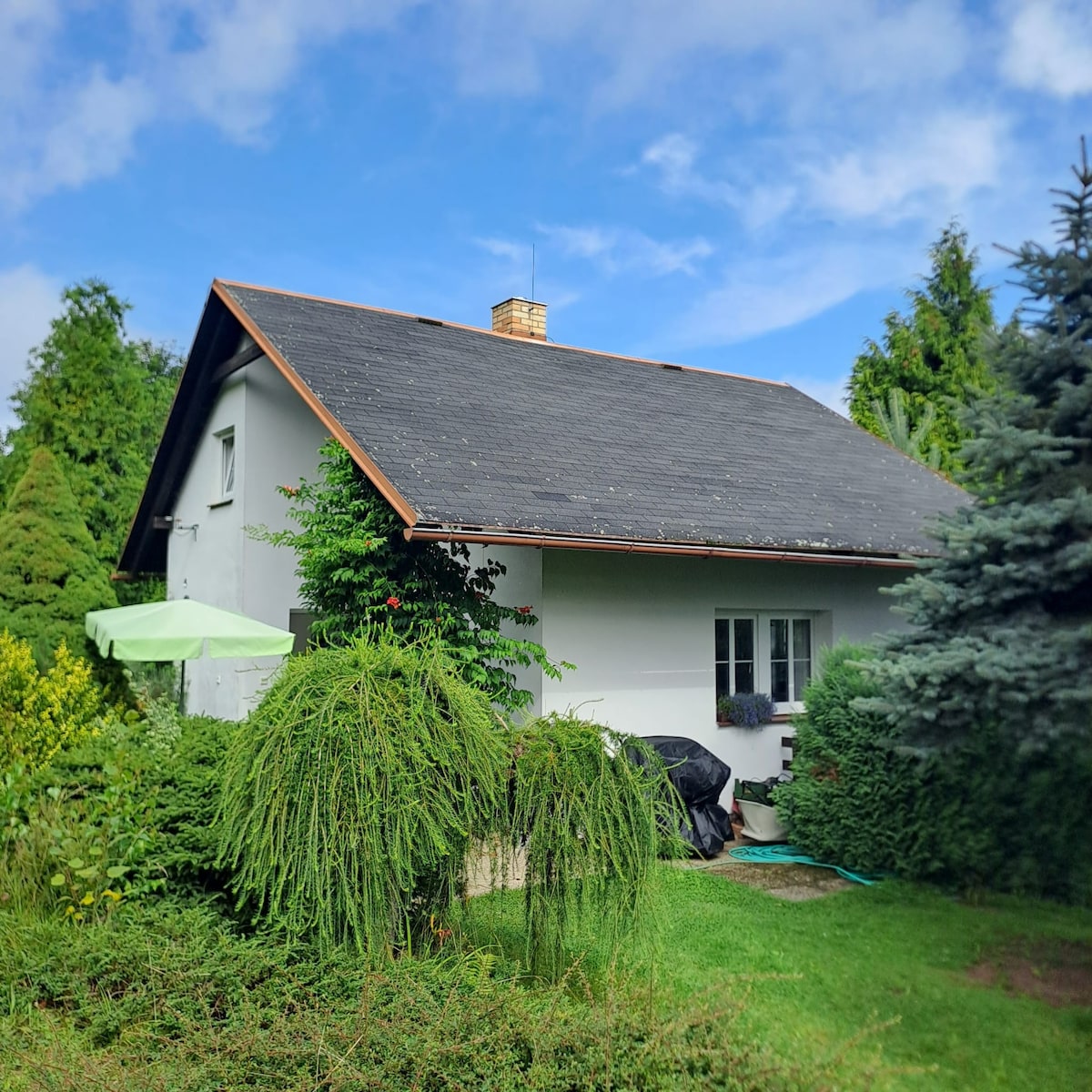 Dobro došli u našu novouređenu seosku kućicu u podnožju planina Jizera, 10 minuta od centra Libereca! Ova udobna planinska kuća nalazi se usred šume, okružena zelenilom, pružajući zadivljujući pogled iz svake sobe. Uživajte u opuštanju u vanjskom prostoru za sjedenje, uživanju u roštilju, ognjištu, a sve u privatnosti prostranog ograđenog objekta. Idealno za opuštanje ili polazište za sportske aktivnosti i izlete u to područje. Osim toga, nudi odličan pristup prevozu. Dobro došli na mjesto gdje se priroda i udobnost stapaju.