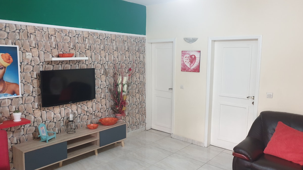 Appartement refait a neuf Intérieur contemporain et cosy Centre ville Idéal pour voyage d'affaire Totalement équipé, ne posez plus que vos valises! A partir d’une nuit. Possibilité longue durée 2 balcons 2 chambres Sur place: Wifi / IP TV / Ménagère / Smart TV Gardien sur place 24H Transfert aéroport sur demande 10 000fcfa de courant offert pour les 1ères nuits. Après c’est à votre charge. **Longue durée: une caution vous sera demandée à votre arrivée et restituée à la sortie des lieux**