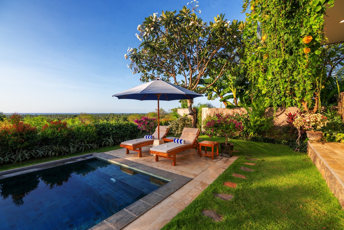Ova prekrasna vila s bazenom s 3 spavaće sobe nalazi se na samoj plaži i nudi miran odmor s direktnim pristupom plaži, privatni bazen veličine 15 x 5 metara i prostrane tropske vrtove. Posvećeni tim osoblja je na raspolaganju kako bi se osigurao besprijekoran i opuštajući boravak. Renovirana u aprilu 2025. godine, vila ima šarmantni dizajn u stilu joglo koji spaja tradicionalni karakter s modernom udobnošću. Uživajte u potpuno opremljenim dnevnim boravcima, trpezarijama i kuhinji, savršenim za miran i privatan odmor uz plažu.