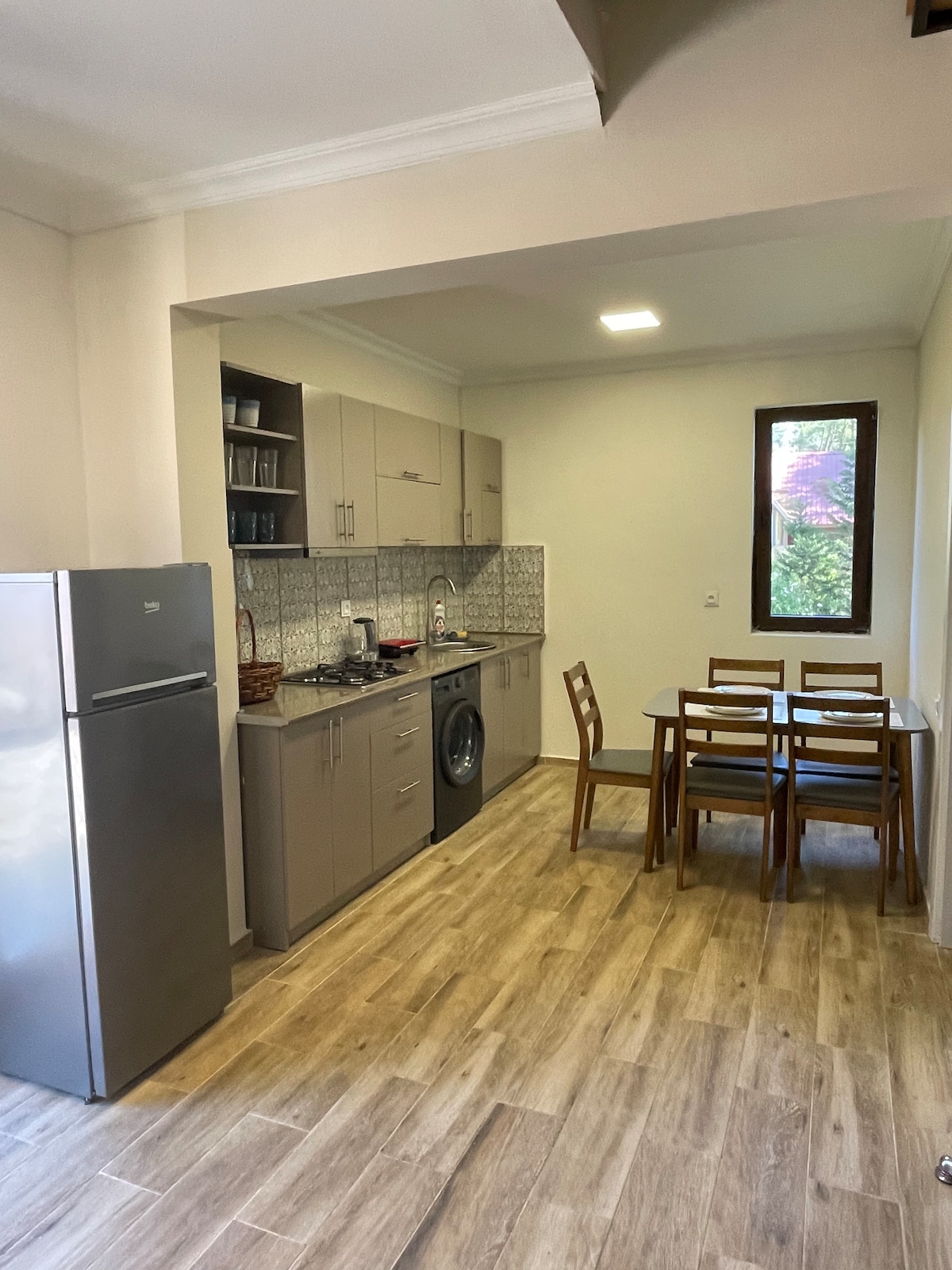 Our holiday home, located in the quiet resort of Grigoleti, is surrounded by pine trees and is just 2 minutes walk from the beach. This is a holiday home, equipped with everything necessary for a family or group of friends. We offer our guests to stay in our house and enjoy a cozy home, a tranquil atmosphere, the beautiful Black Sea and black magnetic sand beach, for which the coastline of Guria is famous.