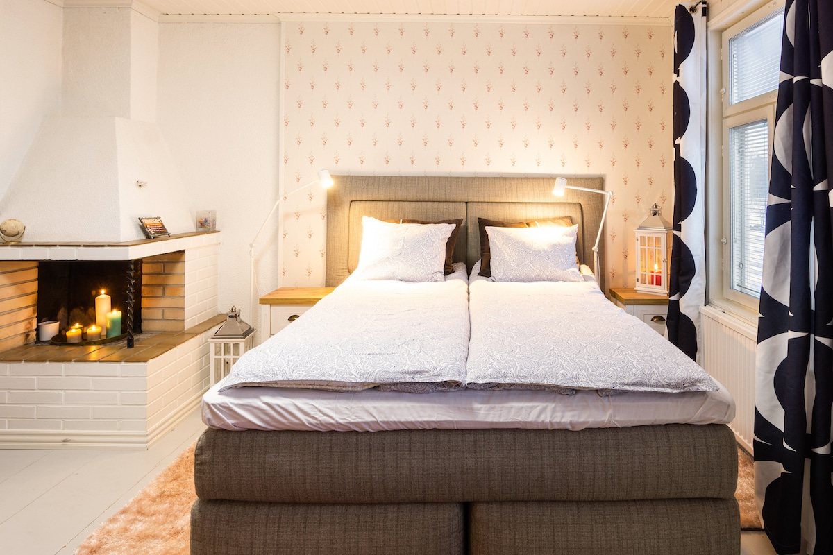 Potpuno novi studio apartman u lijepom okruženju u blizini dvorca Turku i luke. Centar grada udaljen je samo 20 minuta hoda od prekrasne rijeke. Stan ima sve što vam je potrebno za kratku posjetu ili duži boravak, potpuno opremljenu kuhinju, kupatilo, novi veći bračni krevet i lijepo dvorište. Wi-Fi pristup će vam omogućiti da budete povezani tokom putovanja. Gosti sada također mogu uživati u novom TV-u. Uusi yksi lähellä Turun satamaa, kävelyetäisyydellä keskustaan.