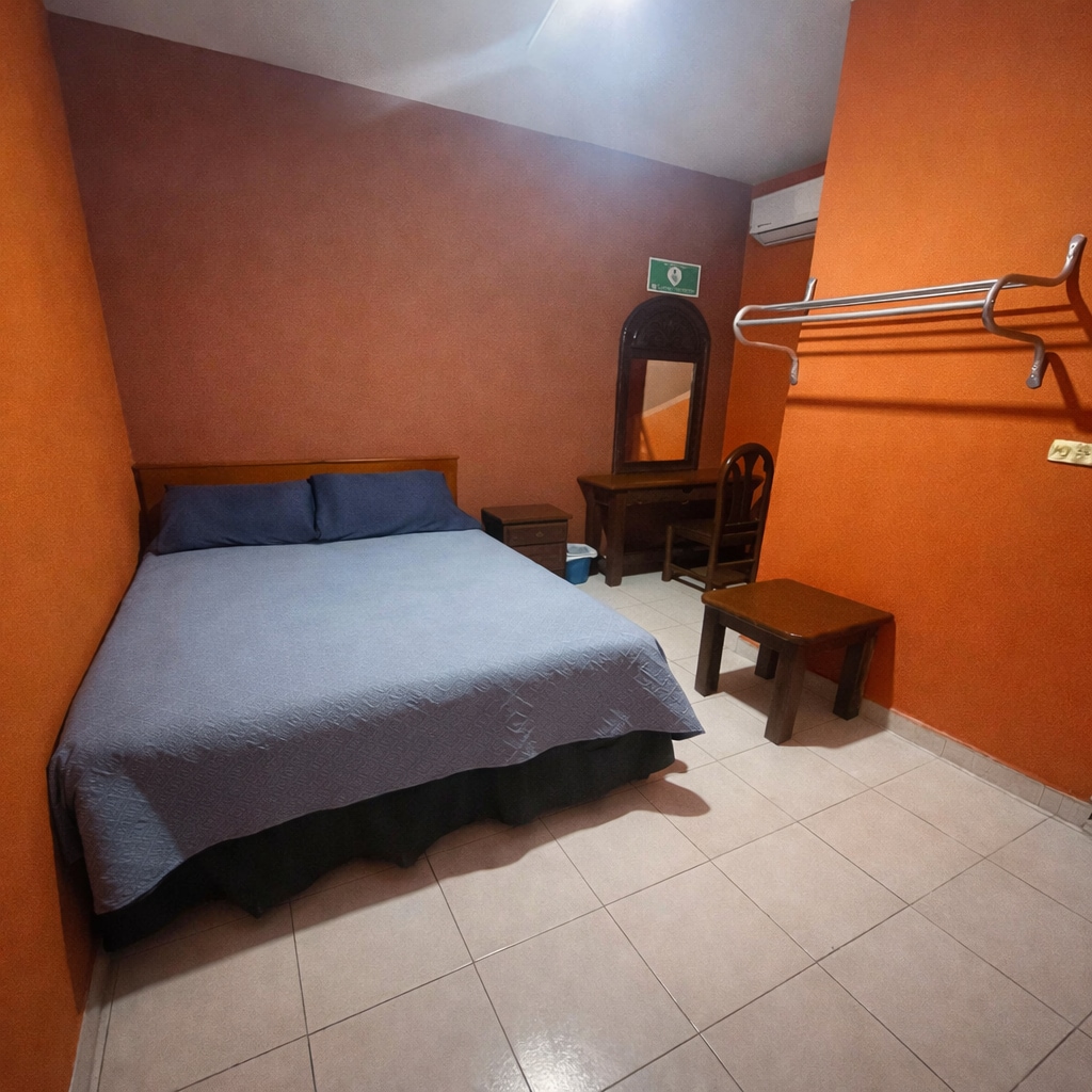 Soba s king size krevetom i privatnim kupatilom – Hotel Raffaello Smještena na drugom spratu, naša soba King Size kombinuje udobnost, privatnost i mirno okruženje idealno za odmor nakon cjelodnevne šetnje ili rada. Ima veliki bračni krevet, privatno kupatilo, klima uređaj, TV, radni sto i Wi-Fi. Savršeno za parove, poslovne putnike ili one koji traže udoban i praktičan boravak na odličnoj lokaciji u Linaresu.