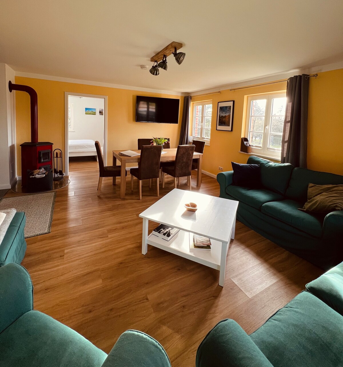 Opustite se s nama, zadržite se u parku na imanju i uživajte. Stan površine oko 65 m2 nalazi se na istočnoj strani na gornjem spratu historijskog imanja, koja se postepeno rekonstruira. Gosti mogu pristupiti terasi. Roštilj je spreman za večer, a tu je i ognjište. Putem naše voćne livade dolazite u Trebel, gdje možete ići na pecanje, doživjeti prirodu ili koristiti pedalinu. Bassendorf je ruralna idila do koje možete doći avenijom dužine 2 km.