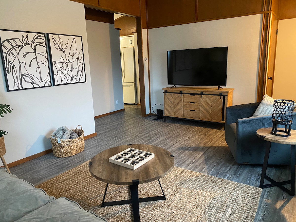 Dobro došli u naše potpuno renovirano Airbnb utočište, elegantno utočište koje besprijekorno spaja modernu udobnost s udobnim šarmom. Ovaj dragulj od 37 kvadratnih metara se može pohvaliti s dvije privlačne spavaće sobe i jednim elegantnim kupatilom, što pruža savršen prostor za nezaboravan boravak u Cedar Rapidsu. Zakoračite u svijetli i prozračni životni prostor, ukrašen namještajem u stilu seoske kuće i pažljivo osmišljenim dekorom.