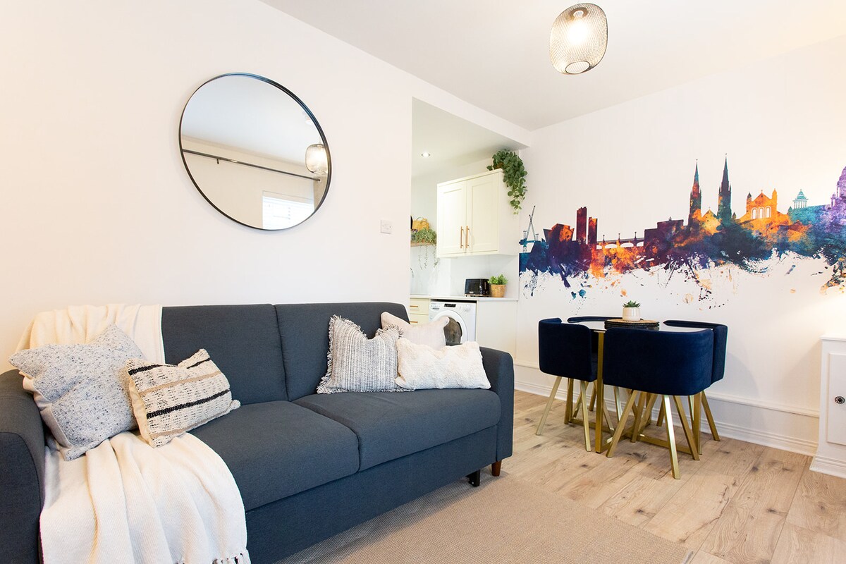 Čeka vas naš luksuzni stan s 5* potpuno opremljenim krevetom. Prekrasno namješten umjetnička djela sjevernoirskih umjetnika, ovaj njujorški stilski prostor je na idealnoj lokaciji za kratkoročne i dugoročne posjetioce. Prozori od poda do plafona pružaju iskusnom putniku spektakularan pogled na grad do brežuljaka Belfasta. Smješten u zanatskom kvartu Dublin Road u blizini Gradske vijećnice, imate pristup bez premca za sve što ova izuzetna destinacija nudi. Idealan prostor WFH također!