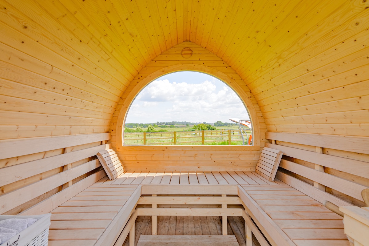 Jedinstvena i prostrana pastirska koliba na mirnoj i privatnoj farmi u Eckingtonu u Cotswoldsu. Masažna kada Hikki u Švedskoj dostupna je gostima 0-24, sa zadivljujućim pogledom na prirodu. Po dolasku obezbjeđujemo nekoliko cjepanica i drva za potpalu. Savršeno za vikend odmor za dvoje s udobnim bračnim krevetom, radnom kuhinjom i tuš kabinom. Pogled iz masažne kade je na Bredon Hill, a većinu jutara vidjet ćete krdo jelena kako prolazi kroz polje.