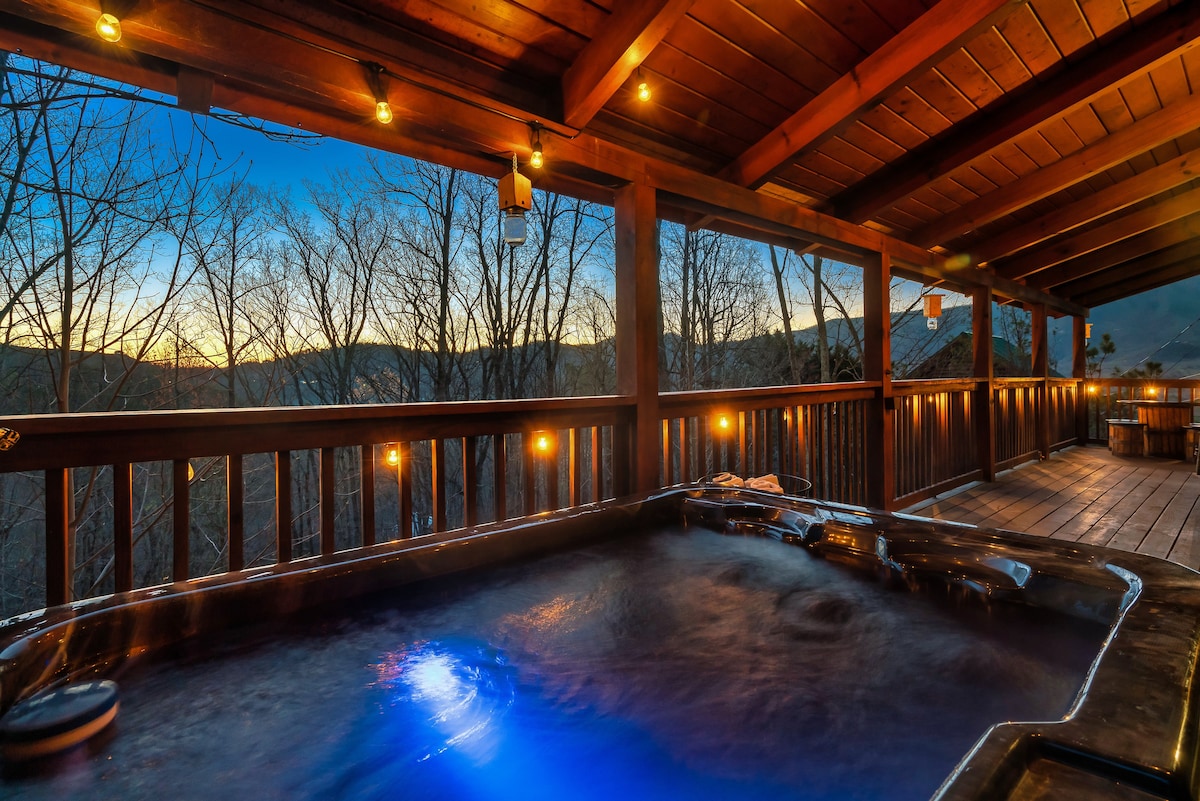 ❗️ CALLING ALL COUPLES ❗️ ★ The BREATHTAKING MOUNTAIN VIEW From Your Private Patio & Hot Tub ★ Escape to this beautiful log cabin for perfect honeymoon, anniversary, retreat or special get-away! Wake up to morning coffee and panoramic views of mountains, and unwind in your private hot tub at sunset. Enjoy a pool game, and top off your evening with a soak in your heart-shaped jacuzzi! Just minutes from Pigeon Forge attractions!