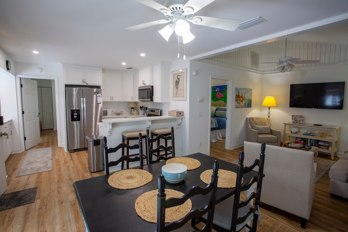 Pobjegnite u svoje privatno utočište na prekrasnom ostrvu St. Simons u Georgiji. Ovo utočište samo za odrasle, pogodno za kućne ljubimce, nudi savršen spoj moderne udobnosti i šarma obale. Nedavno renoviran, smještaj ima 2 spavaće sobe, 1 kupatilo i divnu kuhinju. Uživajte u ograđenom dvorištu, natkrivenom dvorištu, privatnoj masažnoj kadi i sjenovitom parkingu ispod zapanjujućih živih hrastova. Savršeno smješten u blizini plaža, restorana i otočnih atrakcija; čeka vas vaš privatni smještaj uz obalu.