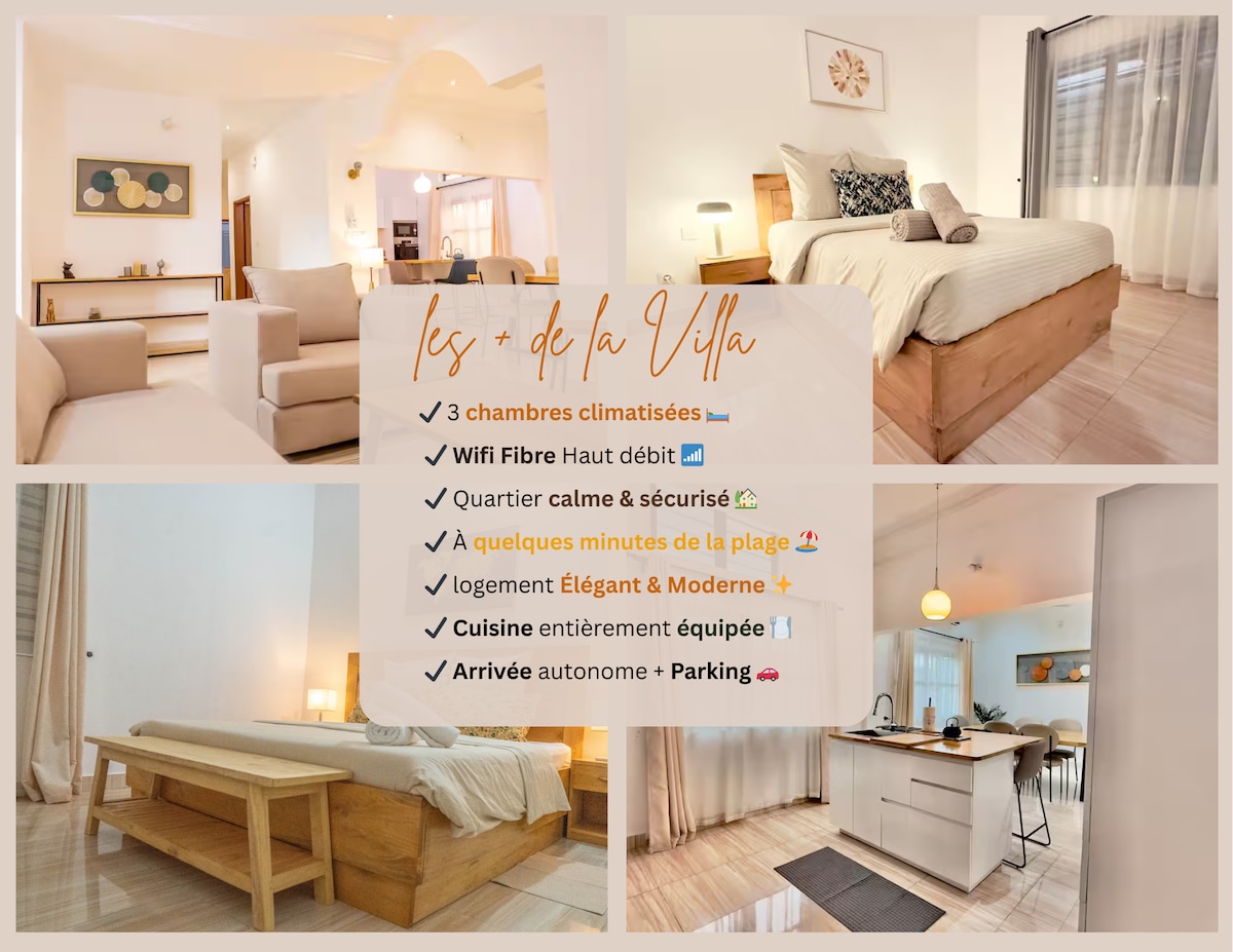 Otkrijte našu modernu i besprijekornu kuću, koja se nalazi 5 minuta od plaže, u blizini francuske srednje škole Pierre Manoel i aerodroma. Idealan za profesionalne, porodične i prijateljske boravke, nudi tri udobne spavaće sobe, otvorenu kuhinju s centralnim otokom, svijetlu dnevnu sobu i trpezariju. Živahna četvrt Fidjrossè također vam nudi mnoge sadržaje, kao što su prodavnice, restorani, barovi i supermarketi.