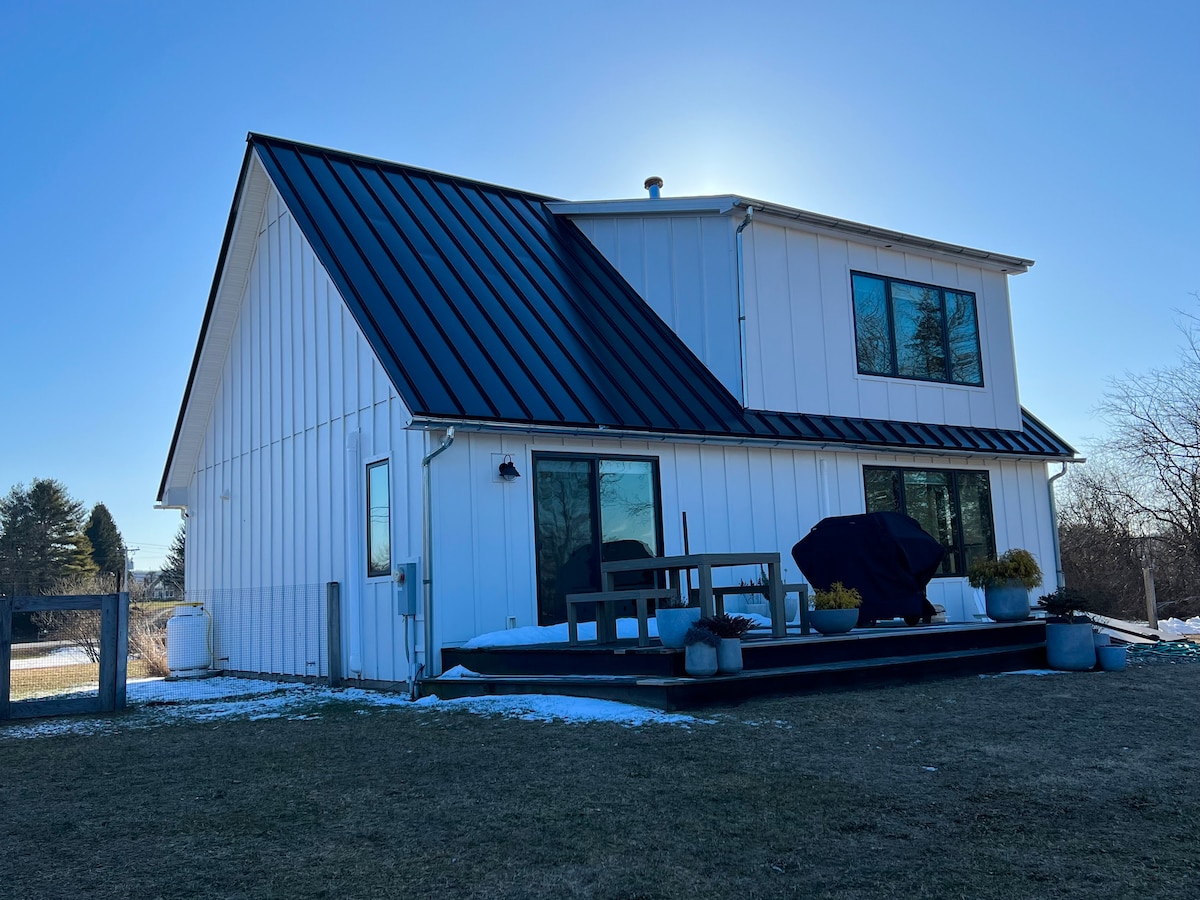 1873 Elegantna i udobna kuća na farmi Hudson sa šporetom na drva i savršenim trijemom. 14 minuta vožnje do ulice Warren St. Ova kuća s 3 spavaće sobe + uredska kuća je s ljubavlju ažurirana, zadržavajući originalne detalje ovog historijskog objekta. Smješten na hektaru zemlje, u mirnoj ulici, ovo mirno utočište savršeno je mjesto za odmor i opuštanje. S visokim stropovima, tonama ogromnih prozora i otvorenim rasporedom, ova kuća djeluje i prozračno i svijetlo.