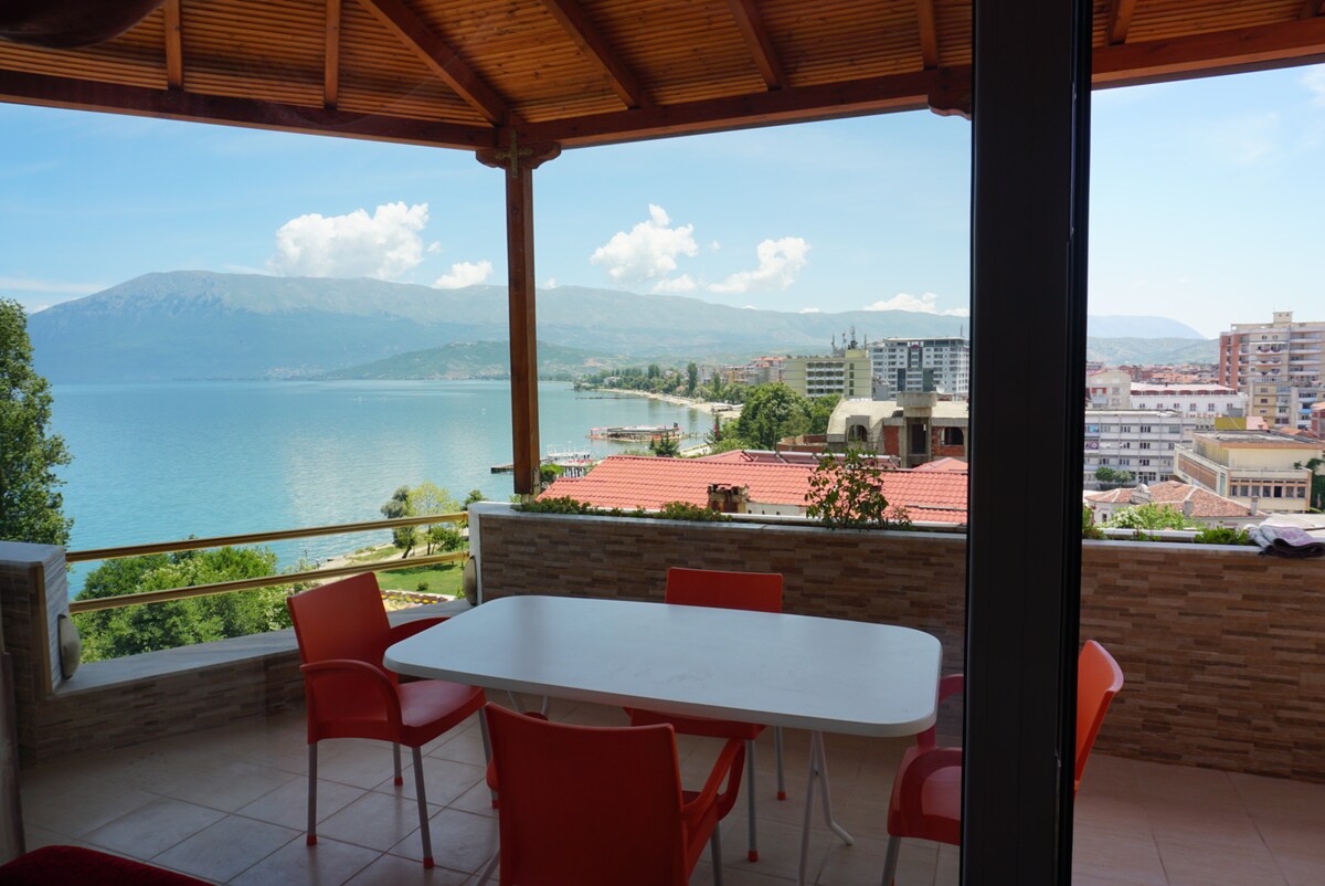Želite li doživjeti pravu albansku kulturu? Želite li vlastitu kuću, a ne samo sobu? Želite li tradicionalnu domaću organsku hranu s ručno ubranim povrćem iz vrta? Želite li vlastiti besplatni turistički vodič? Dođite i boravite kod Leile i Shabana. Stariji par koji voli upoznavati nove ljude uprkos tome što ne govori engleski. Naša kuća se nalazi na vrhu brda s pogledom na jezero. Uživajte u večeri na balkonu i gledajte zalazak sunca iznad jezera.