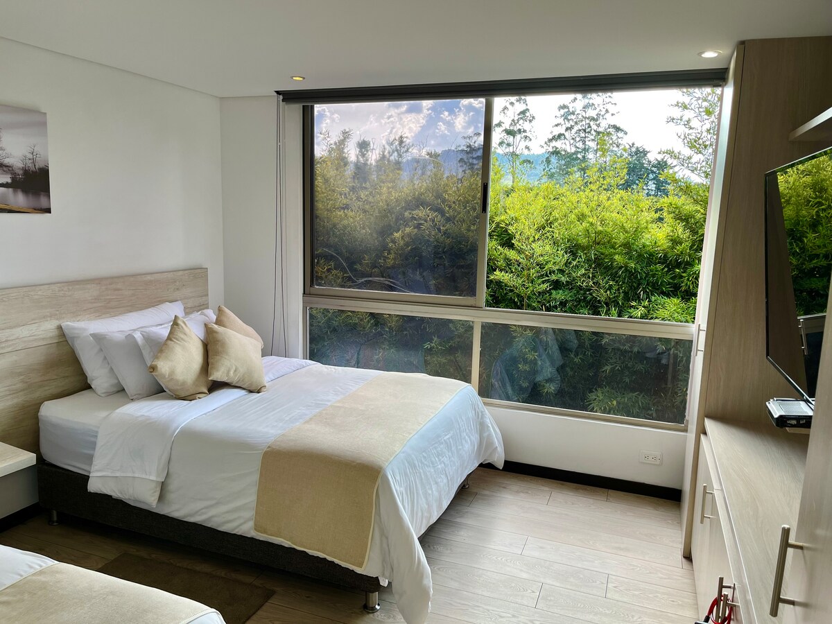 The largest apartment in the MG Casagrande Hotel complex, perfect for guests who value space and comfort (not a studio or loft). Located in the heart of Llanogrande, with hotel-style cleaning service, private parking, and access to a heated pool, jacuzzi, sauna, Turkish bath, and gym. Just 700 meters from Jardines de Llanogrande and Llanogrande Mall, near top restaurants and bars. Close to Guatapé and El Peñol, 20 min from Medellín and 8 min from JMC Airport.