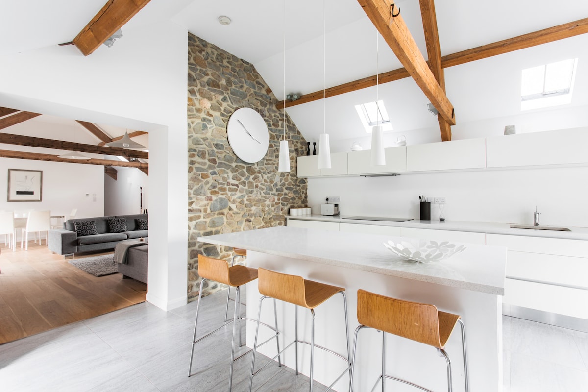 Preuređenje novog ambara. Pokušala sam zadržati karakter. Uređenje je poljoprivredno/industrijsko, ponovo koristi što više sirovina oko farme. Ima tri bračna kreveta u apartmanu. 1 x Vrlo velika spavaća soba na katu s kaučem i balkonom te 2 manje spavaće sobe u prizemlju. Svaka soba ima TV i Wi-Fi. Glavni dnevni boravak uključuje kuhinju, stol, veliki kauč u obliku slova L i stolić za kafu: vanjski stol i stolice, roštilj i natkriveni prostor za odlaganje bicikala i punjač za električna vozila (50p/kw) itd.