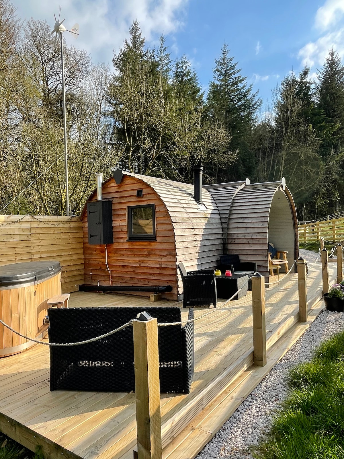 Our offgrid glamping pod sleeps 2 adults, on a secluded but private spot on our farm. It offers a king size bed, kitchen, bathroom, seating area, with a log burner. Our offgrid pod is run on solar, wind and LPG gas with no reception or wifi, this is your total getaway from everything and everyone. So just park up, then relax in the wood fired hot tub for 2 and forget about your worries, just listen to nature around you and at night enjoy the dark skies
