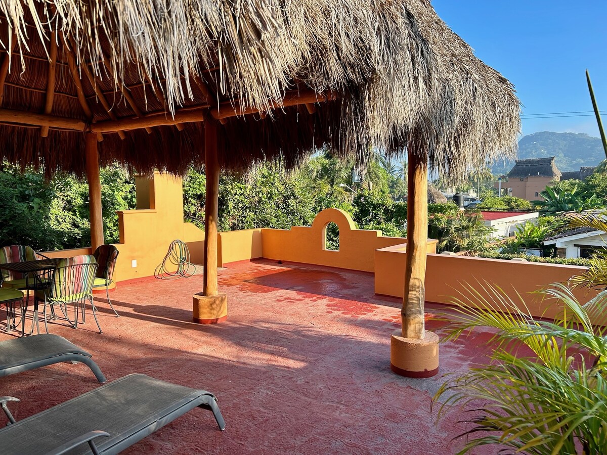 Ova studio kuća od 10 x 12 kvadratnih metara udaljena je 5 minuta hoda do plaže i 10 minuta hoda do grada u Lo de Marcosu. LdM se povoljno nalazi između San Pancha i Guayabitosa . Mali pueblo Lo de Marcos ima prekrasnu plažu, ljubazne ljude i mnogo restorana! Žao nam je, nema dostupnih kuhinja/ veša. Podržite lokalno selo! Dijelite lijepu baštu s drugim studio apartmanom. Vanjski tuš za ispiranje „nakon plaže”. Ovdje žive mačke. Ostali kućni ljubimci nisu dozvoljeni.