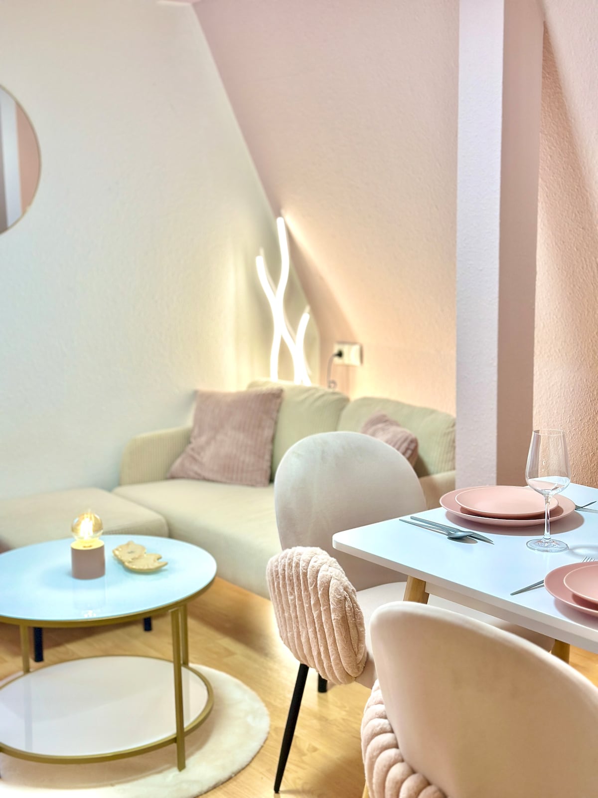 Ovaj svijetli stan na gornjem spratu ima udoban dnevni boravak s kutkom za spavanje, radnim stolom i mnogo prirodnog svjetla. Potpuno opremljena kuhinja s trpezarijom kombinuje stil i funkcionalnost. Prostrani balkon nudi zadivljujući pogled na grad i planine. Moderno kupatilo s kadom osigurava udobnost. Dostupno je besplatno parkirališno mjesto. Trgovine, restorani i željeznička stanica su u blizini, dok su jezero Constance i Festivalska dvorana udaljeni oko 1 km.