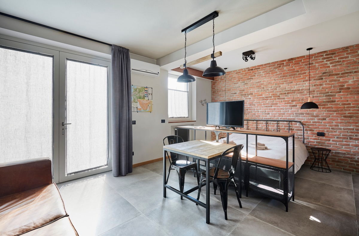 Prelijep tavan, nedavno renoviran, sastoji se od čajne kuhinje i frižidera, s mogućnošću kuhanja i hrane, prostora za sjedenje sa sofom, TV-om, DVD playerom i velikom kolekcijom filmova, Wi-Fi, bračnim krevetom, privatnim sadržajima sa umivaonikom, tušem i mašinom za pranje veša. Dva velika prozora koji otvaraju transom čine prostoriju vrlo svjetlom, uz mogućnost gledanja i uživanja u prekrasnom krajoliku koji ga okružuje. Smještaj je dobro izoliran i ne smeta ga vanjska buka, odlična za opuštanje u miru. Parking Privatni parking u blizini ulaza. Smještaj se nalazi u centru Dervia, željeznička stanica je udaljena 100 metara, izlaz SS36 Milano-Lecco-500m Valtellina, supermarket, banka i apoteka 50mt, 300mt do plaže. Prilika za pješačenje po planinama bez korištenja prevoza, škole surfanja, jedrenja, kitesurfinga, izleta brodom. Grad Lecco se nalazi 30 km, 80 km Milano, Como, 50 km, 40 km do granice sa Švicarskom, Menaggiom, Bellagiom, Varennom može se lako doći trajektom ili metroom. Zimi su skijališta Valtellina (Madesimo, Bormio, Chiesa Valmalenco) udaljena manje od sat vremena vožnje.