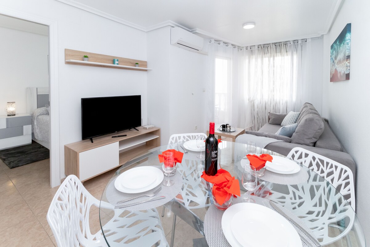 Dobro došli u naš prekrasan stan 3 minute hoda od najbolje plaže Torrevieja - Los Locos! Potrošnja u supermarketu 5 minuta hoda. Ovaj udoban stan je idealan za parove i porodice koji traže odmor na plaži na osunčanom jugu Španije. Fantastična lokacija s pristupom prirodnim bazenima Torrevieja. U blizini ima mnogo restorana, barova i prodavnica, tako da ćete uvijek imati nešto za raditi.