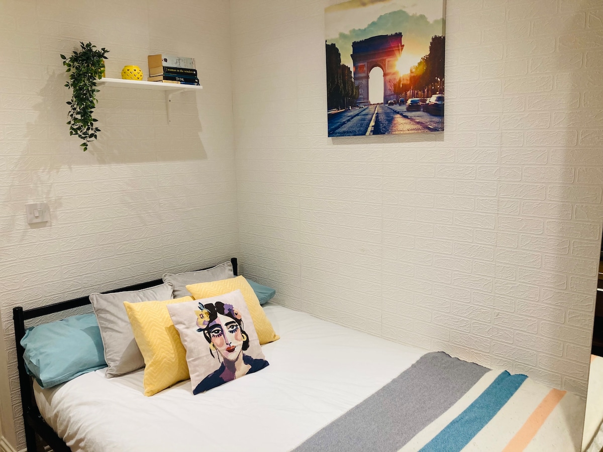 Privatna soba. Bračni krevet s udobnim madracem. Pristup tušu u novoobnovljenom kupatilu. Dodatni peškiri/posteljina su dostupni na zahtjev. Kuća se nalazi 30 do 60 minuta od centra Londona, u zavisnosti od toga gdje želite ići/koju stanicu koristite. Autobusom se za 3 minute možete odvesti do metro stanice Elm Park ili za 10 minuta do linije Romford/Elizabeth. Obje vas vode do centra Londona. Linija Elizabeth vas vodi do ulice Liverpool za 24 minute. Autobus je 252, a autobuska stanica je RK. Supermarket Tesco udaljen 10 minuta hoda