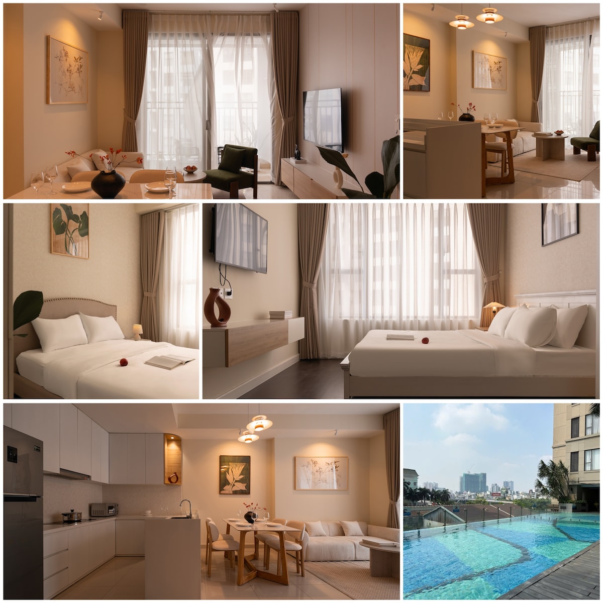 Căn hộ được thiết kế đẹp mắt theo phong cách Wabi Sabi, nằm ở tầng cao của tòa nhà ZENITY CAPITALAND tại trung tâm Quận 1. Với phong cách nghệ thuật độc đáo, căn hộ mang đến tiện nghi nghỉ dưỡng đẳng cấp gồm hồ bơi, hồ tắm spa, phòng tập thể dục, phòng họp, phòng làm việc riêng, khu BBQ sân vườn,khu vui chơi trẻ em, phòng chờ rộng rãi có máy lạnh và wifi tại sảnh. Tất cả cửa sổ phòng ngủ và ban công đều có tầm nhìn toàn cảnh ra toàn bộ thành phố. Đây là một căn hộ độc đáo, sang trọng và đẳng cấp