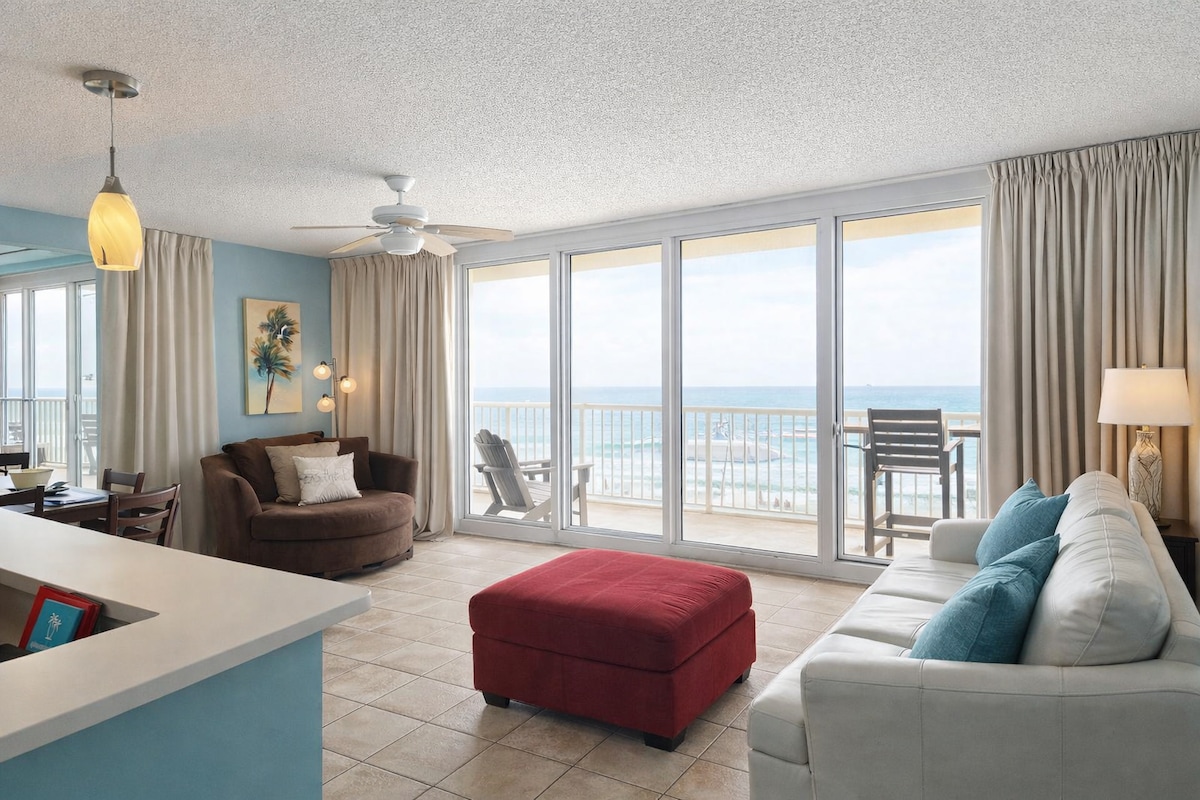 🏝 NAJBOLJE U PCB-u 🏝 Ne može biti mnogo bolje od buđenja uz zadivljujući pogled na okean iz vaše glavne spavaće sobe i zakoračenja pravo na privatni balkon s pogledom na prekrasan izlazak sunca iznad Zaljeva. Započnite dan toplom šoljicom kafe dok uživate u spokojnoj ljepoti smaragdnih voda. Navečer se opustite uz čašu vina dok posmatrate delfine kako elegantno plivaju. Zakoračite direktno na pješčanu plažu bijele boje, raširite stolice i upijte sunce Floride. Savršen odmor