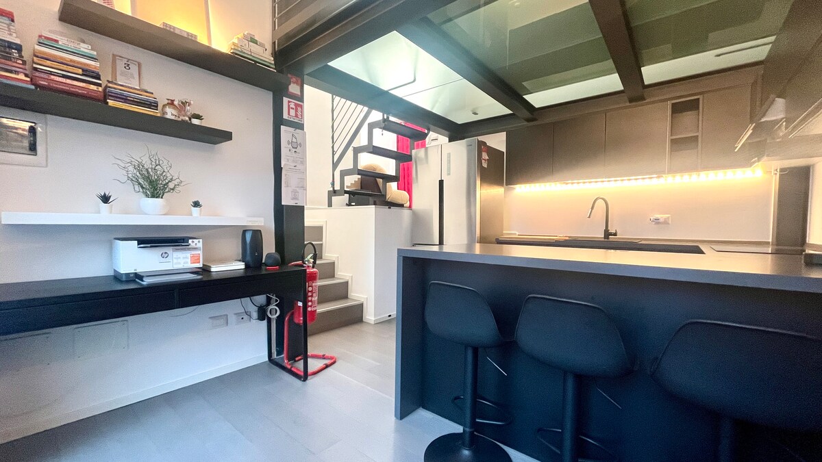 Moderno potkrovlje od 43 kvadratna metra i visine od 4 metra, upravo renovirano. Prizemlje, unutrašnjost, mirno i dobro održavano u svakom detalju. Nalazi se u području Porta Venezia, jednom od najživljih u Milanu, punom barova i restorana, kratka šetnja do Duoma i srca Shoppinga. Područje je vrlo dobro opsluženo prevozom. Kuća ima modernu peglu i staklenu mezaninu s bračnim krevetom. Dnevni boravak ima veliku otvorenu kuhinju i udoban dnevni boravak s kaučem. Kupatilo je veliko i dizajnersko, s velikim tušem.