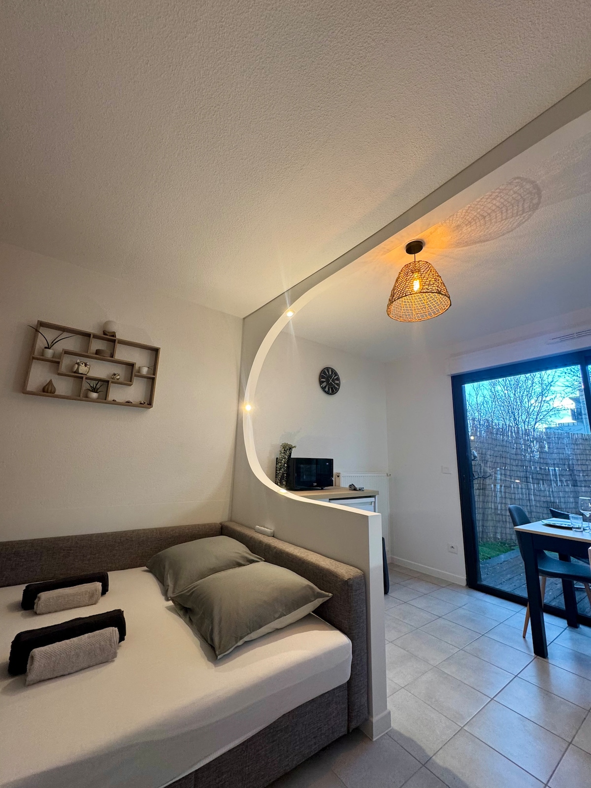 Odsjest ćete u svijetlom stanu od oko 21 m2 koji se dijeli s glavnom kućom. Pristup je nezavisan s namještenom i natkrivenom vanjskom terasom okrenutom prema jugu. Mirno okruženje, u blizini svih sadržaja. prodavnice, škole, srednje škole, bolnica, sportski kompleks i tramvaj u krugu od 5 minuta hoda. Bordeaux možete otkriti pješice, tramvajem, riječnim prevozom ili biciklom.