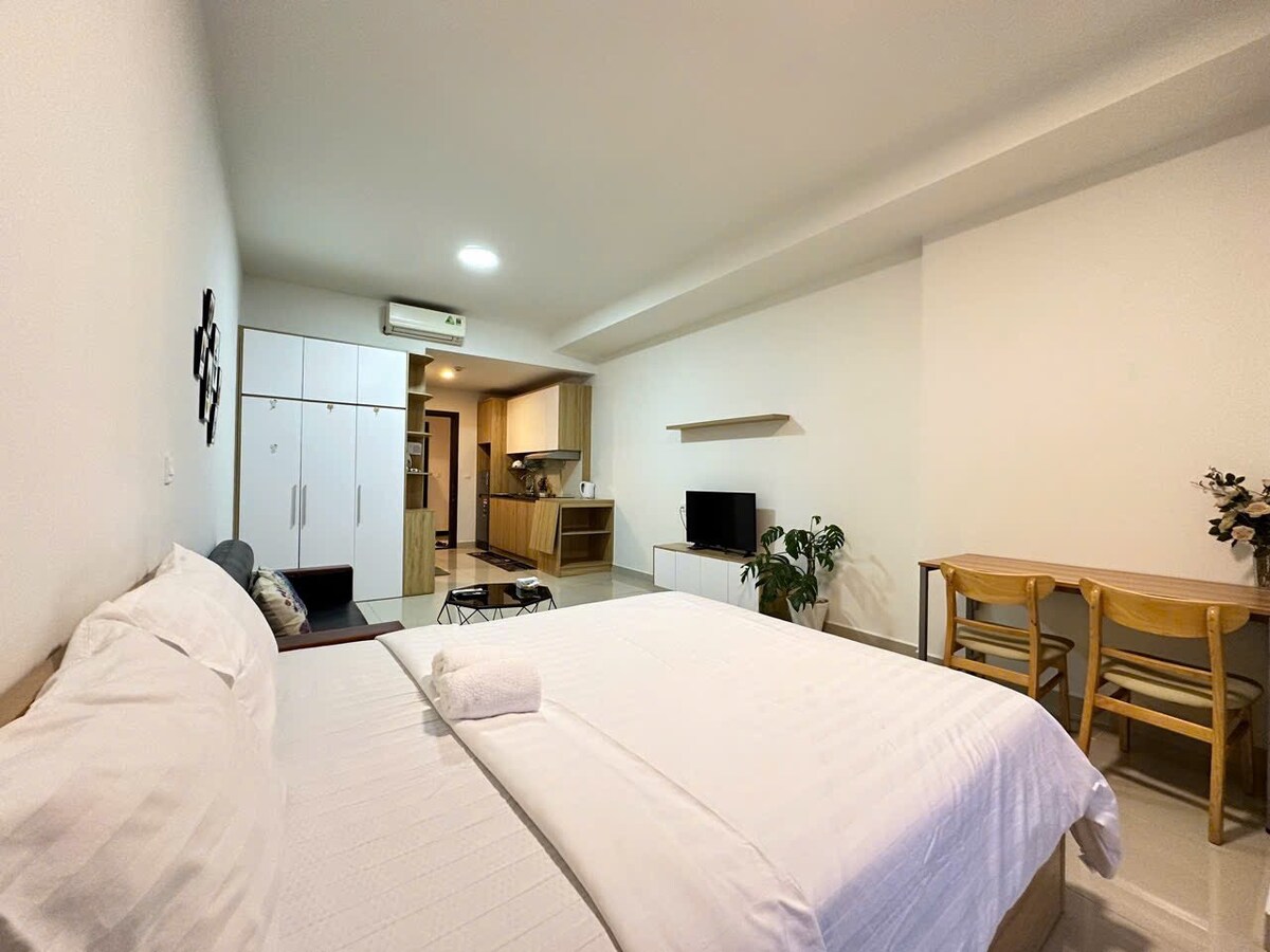 Chill studio 40m2 in A office building. The apartment is in a great location in District 7 (near District 4 and District 1) - Close to everything - 2 minutes to Lotte Mart - 5 minutes - 7 minutes to SC Vivo City, Crescent Mall - 10 minutes to Bui Vien Str., (where there are many bars, pubs) - 3-5 minutes walk to pharmacies, restaurants, markets and local shopping areas around. *Our studio has a full kitchen, utensils. A place like your own home. *Peaceful, clean and fragrant.