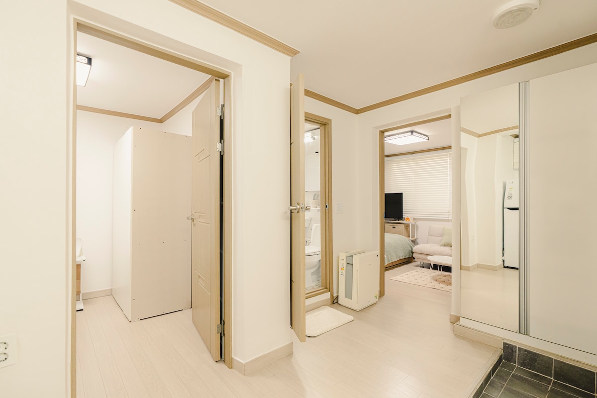* Airbnb vode majka i kćerka🏠 * Sprovodimo obilazak s vodičem. * opremljen madracem tempur * Ne upotrebljavamo posteljinu. Zato se držimo bijele posteljine:) * Posteljina je završena sterilnim sušilicom na svakom pranju. * Povremeno uređujem sobu:) -3 minute od stanice Hansung Univ. - Jednostavan pristup okolnim univerzitetima (Univerzitet Hansung, Ženski univerzitet Sungshin, drevni, vokalni itd.) - Opremljen svim potrepštinama (fen za kosu, proizvodi za čišćenje, šampon/regenerator/gel za tuširanje, tečnost za čišćenje sočiva, pasta za zube...) Lokacija prodavnice - udaljena 1 minut - Tihi i mirni kvartovi (dvorac, mnogi hanoksi) - Ima mnogo univerziteta u okolini, tako da postoji mnogo stvari koje treba uraditi (Daehak-ro, Ženski univerzitet Sungshin, ulica Rodeo,...) - Ima mnogo dobrih kafića i restorana u blizini -10 minuta do Myeong-donga podzemnom željeznicom - Nalazi se u roku od 20 minuta autobusom do palače Gyeongbokgung, palače Changdeokgung, Bukchona itd.