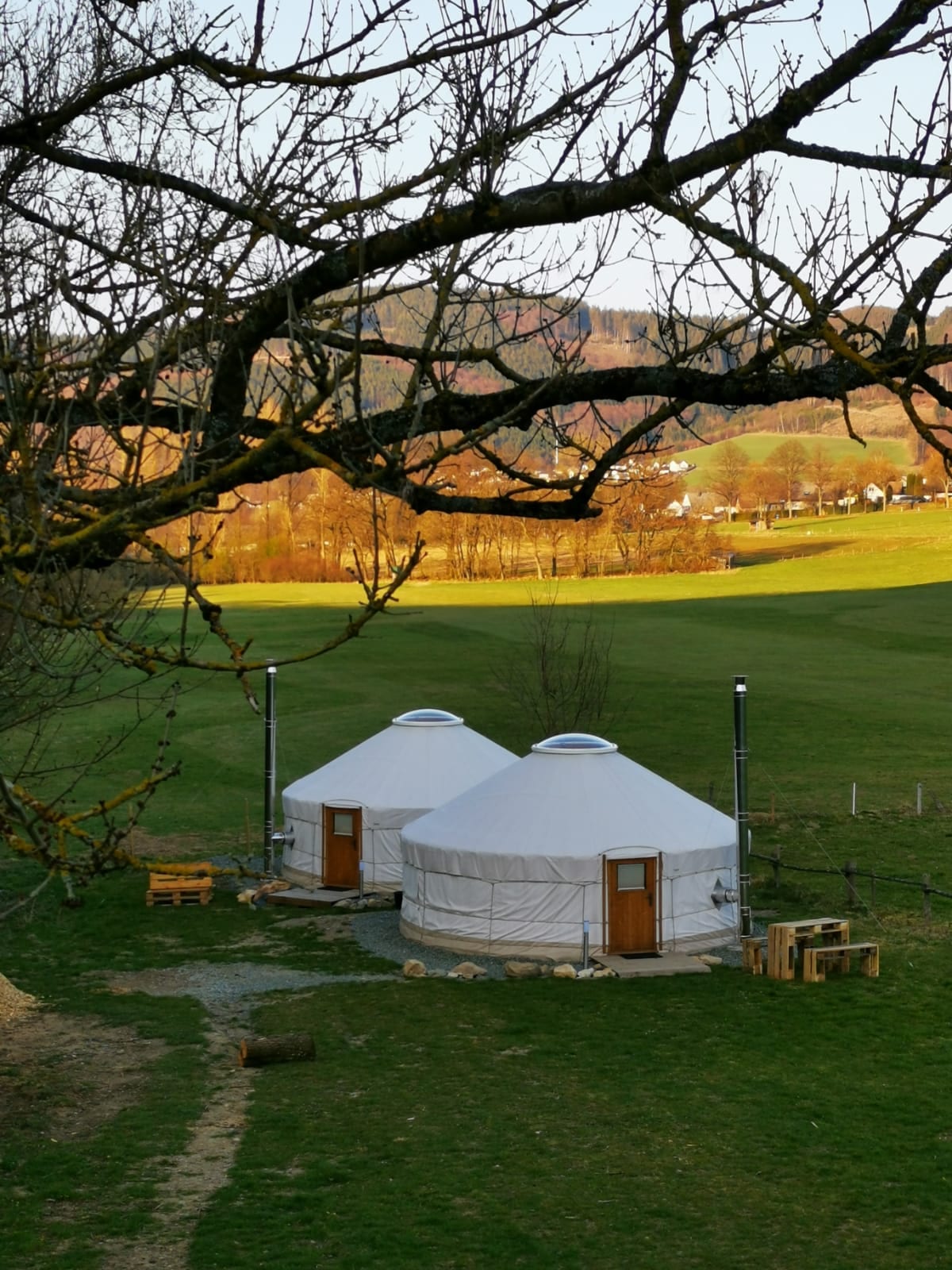 Posmatranje iz kreveta sa zvjezdanog neba. Uživajte u zvukovima prirode dok boravite u ovom posebnom smještaju. Životni prostor bez uglova i rubova u kojem se možete opustiti i provesti vrijeme zajedno. Jurte se nalaze na prirodnom rezervatu od 2500 m2 s jezerom i pogledom na spomenik prirode Bruchhauser Steine.