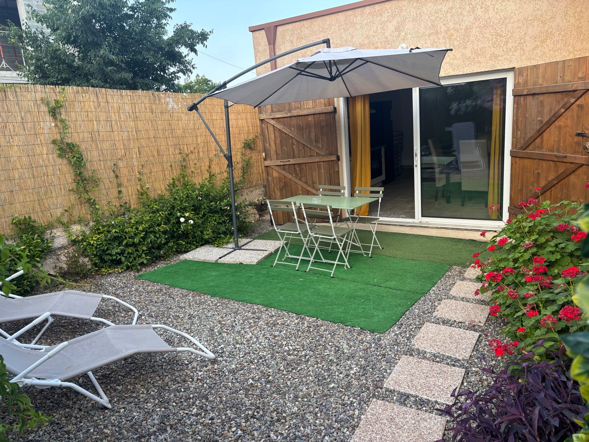 F1 na 1. spratu naše vile, s nezavisnom terasom i parking mjestom. Prikladno za parove i porodice s djecom ili bebe. Mogućnost iznajmljivanja automobila🚘. Nalazi se 2 minute hoda od supermarketa, pekare, banaka, apoteka, delikatesnih trgovina i ukusnih zanatskih makarona, dok ste tihi. Aerodrom Bastia je udaljen 5 minuta vožnje, 10 minuta od kabla za lagune (plaže) i 20 minuta od luke.