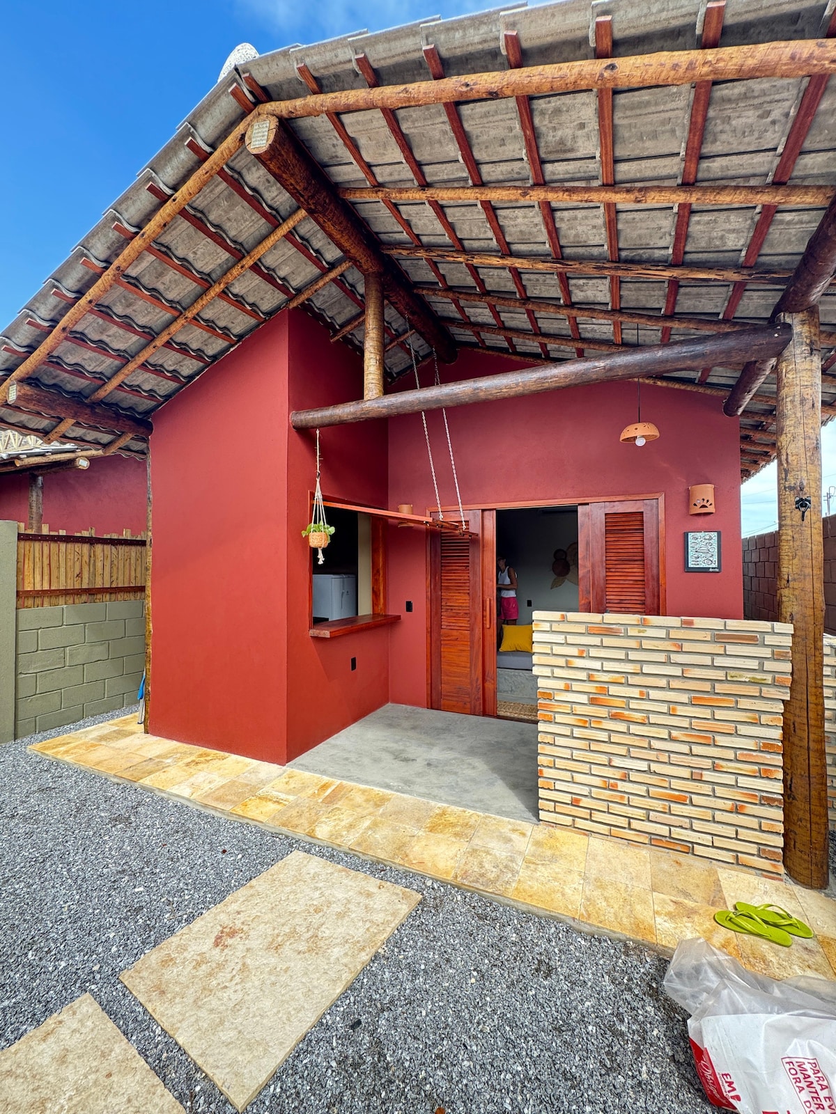 Cijela planinska kuća, nedavno izgrađena, na plaži Macapá na privilegovanoj lokaciji, okrenuta prema moru, 50m od Mangue Seca. 2 spavaće sobe s klima uređajem (jedan apartman), 2 kupatila s električnim tušem. Balkon na gornjem spratu s pogledom na more, dnevni boravak/trpezarija integrisan u opremljenu kuhinju. Privatni parking. Mezanin s pametnim TV-om s Netflixom. Brzi Wi-Fi. Može primiti do 8 osoba (2 u visećim ležaljkama na međuspratu i dvije na kauču na razvlačenje). Dostupna su i dva jednostruka madraca D33.