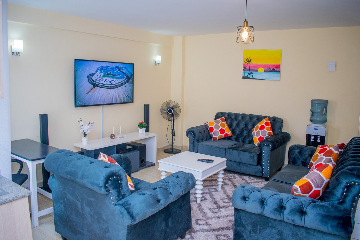 Zašto će vam se svidjeti • 5 fleksibilnih kreveta koji odgovaraju vašem popunjenosti • Namirnice za doručak na zahtjev Samostalno kuhanje • Aerodromski transfer uz naknadu • Divan -ČIST -SIGURAN -TIH stan • 15 minuta do JKIA, SGR, brze ceste • Wi-Fi, društvene igre • Smart TV - Netflix • Balkon i pogled • Toaletne potrepštine i često i održavanje domaćinstva • Idealan je za parove, avanturiste koji putuju sami, poslovne putnike, porodice (s djecom) i velike grupe. • Ljubazno održavan dekor • Osnovni sastojci u kuhinji • Gostoljubiv domaćin.