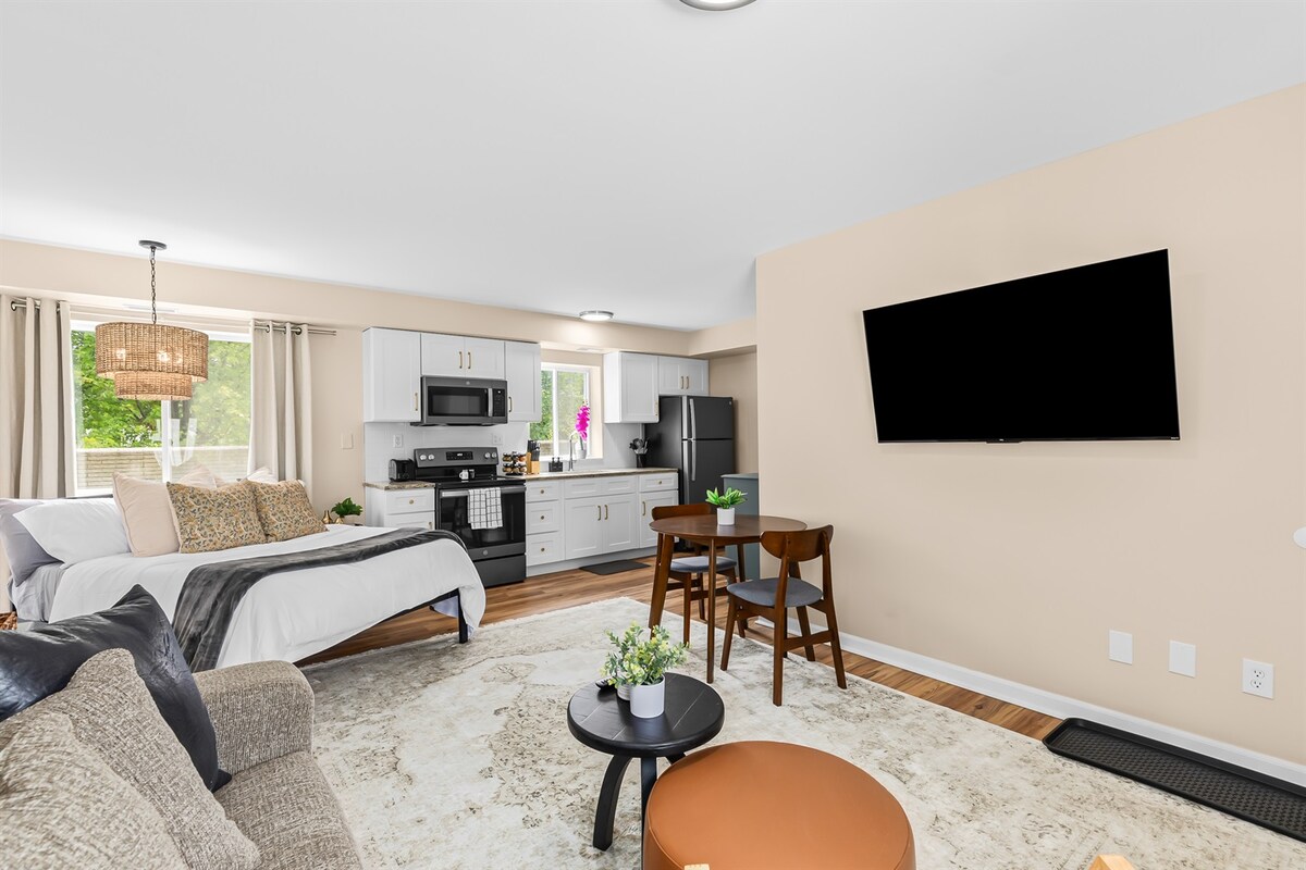Opustite se i uživajte u boravku u ovom prostranom, udobnom i novouređenom studiju! Ovaj studio se povoljno nalazi u Rosevilleu, sigurnoj i mirnoj zajednici. Ova lokacija je savršena za one koji putuju u područje Detroita! U krugu od 1 milje imate pristup brzim cestama 696 i i94, mnoštvo restorana i barova, shopping i prodavnica prehrambenih proizvoda. Sve što vam je potrebno za boravak udaljeno je samo nekoliko minuta! Unutrašnjost prostora ima: ✔ 1 prostrana spavaća soba s bračnim krevetom ✔ Potpuno opremljena kuhinja ✔ 55 inča