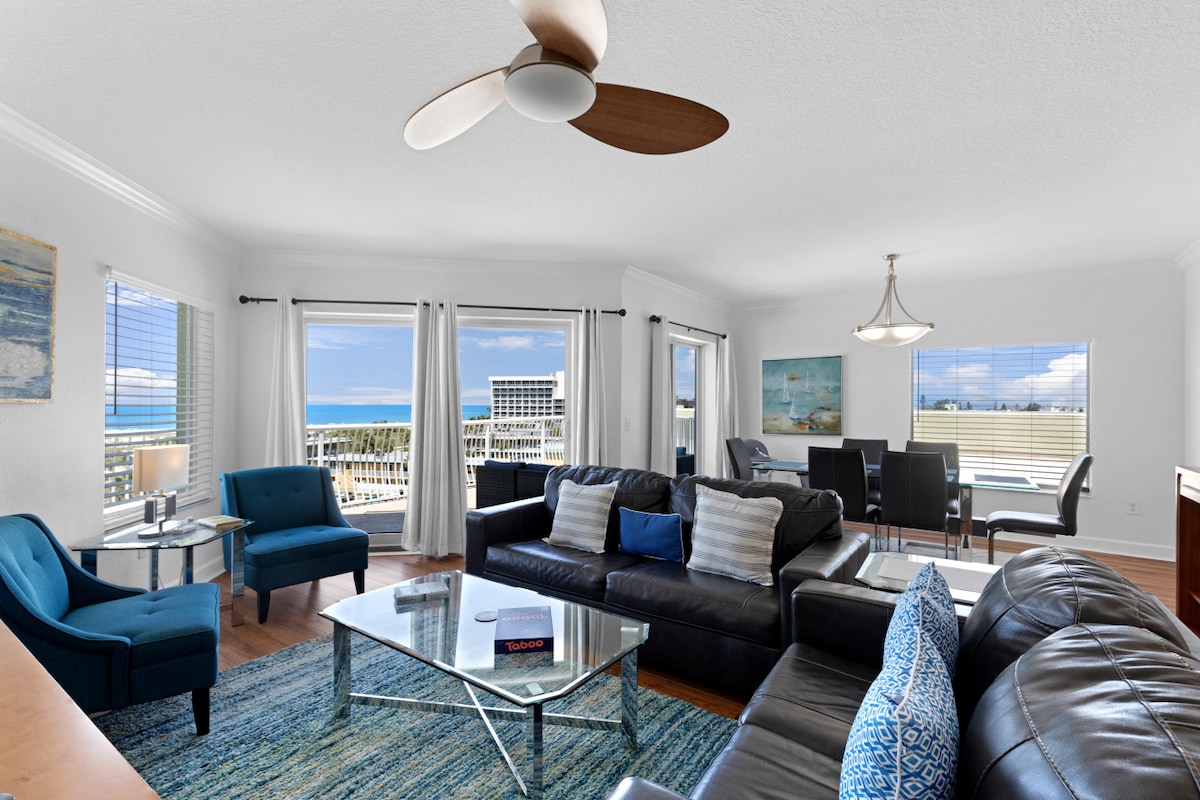A freshly remodeled beachfront condo with a coastal look. This stunning condo features modern coastal decor, with bright colors, beach-inspired accents, and panoramic views of the ocean. This wonderful condo has a private balcony allowing for the enjoyment of the sea breeze and stunning sunsets. The central location between Clearwater and St. Pete provides easy access to nearby restaurants, shops, and entertainment options, making it the perfect beachfront retreat for relaxation and leisure.